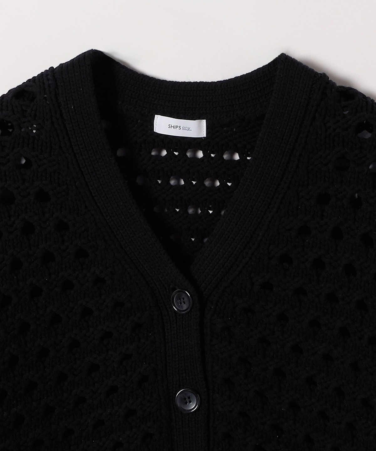 《予約》SHIPS any:〈手洗い可能〉コットン ミックス 透かし編み Vネック カーディガン
