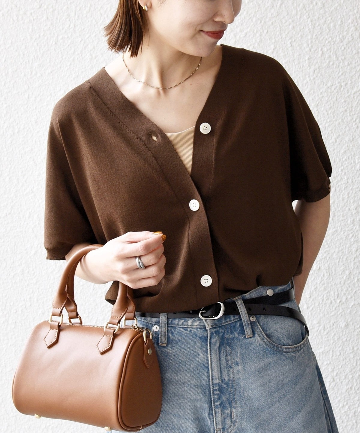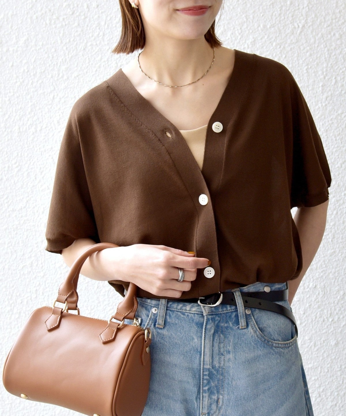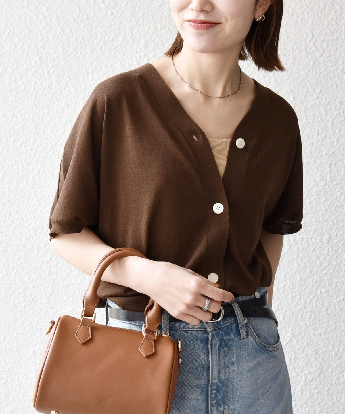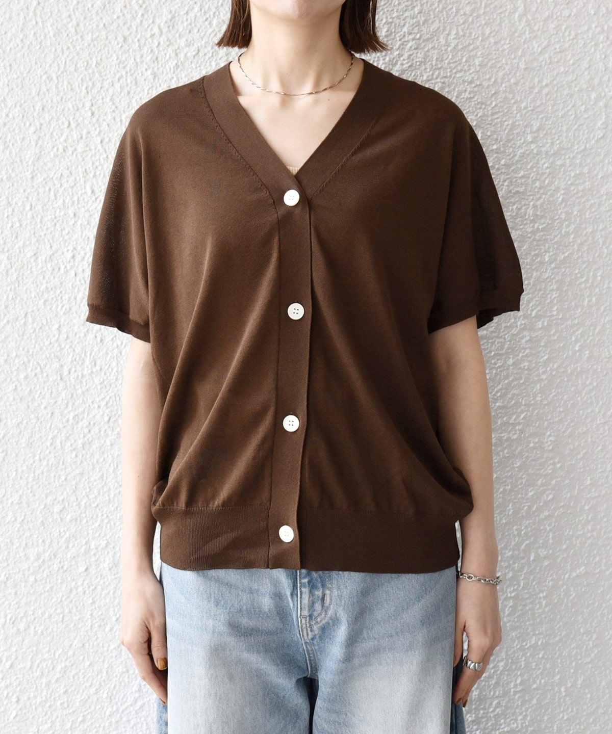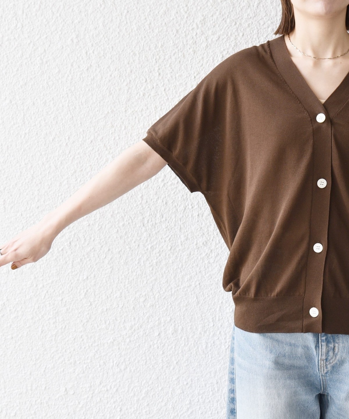身頃から袖にかけてふんわりと広がるドルマンシルエットのニットカーディガン。