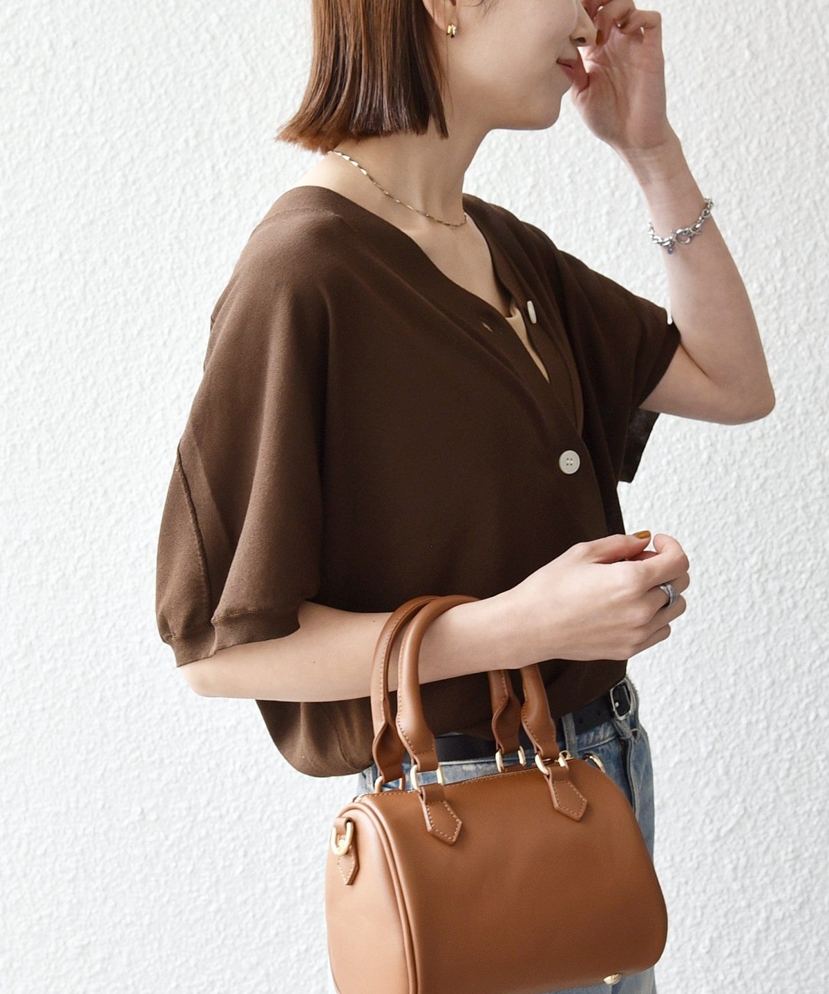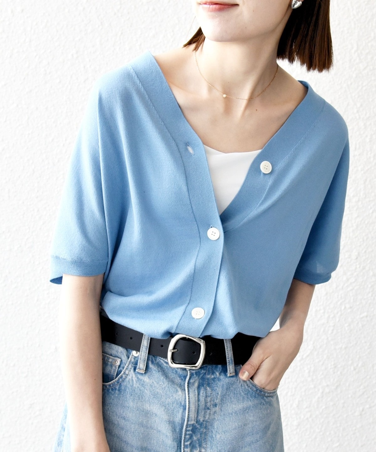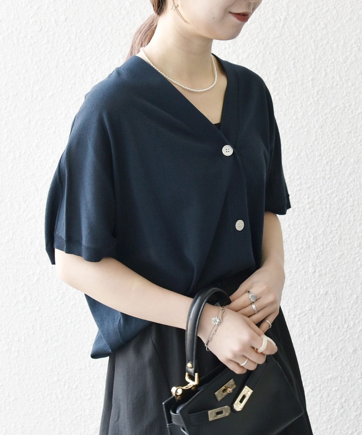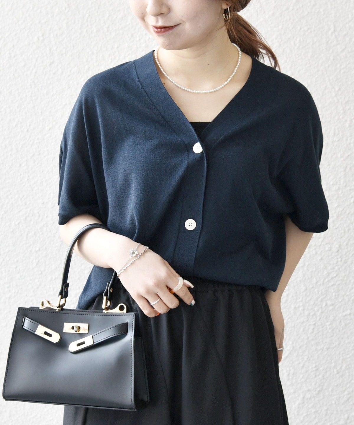 首元はすっきりとしたVネックで、顔回りを華奢に女性らしく演出してくれます。