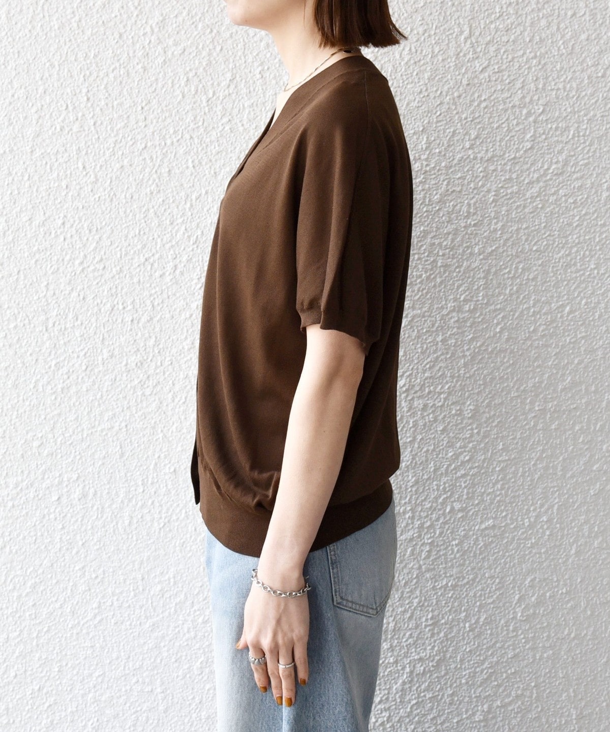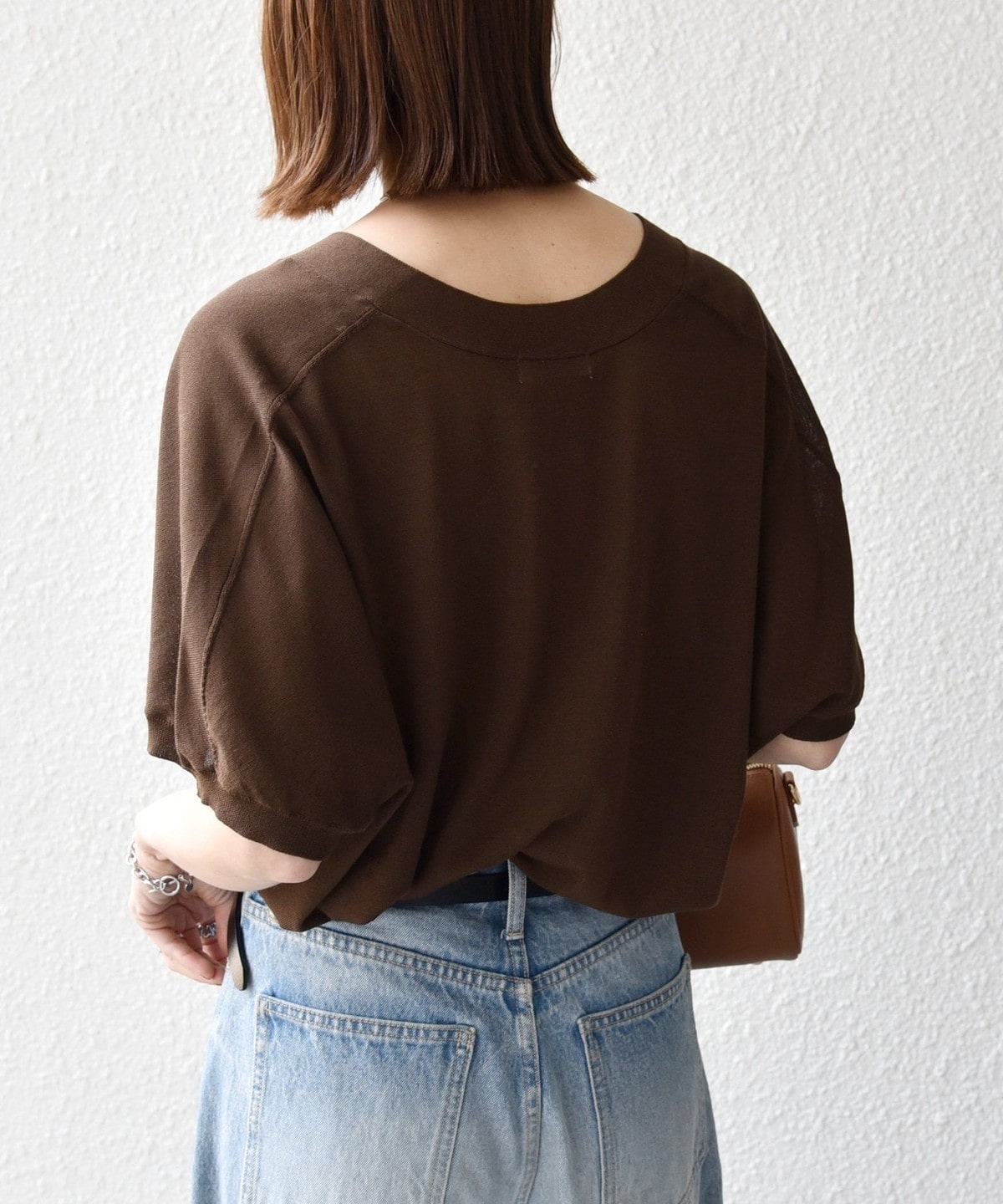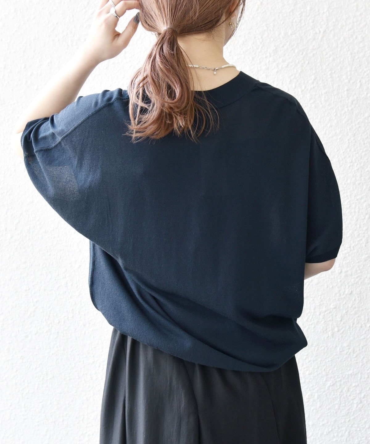ボトムにもタックインしやすい生地感なので、お好みに合わせて着こなしが楽しめます。