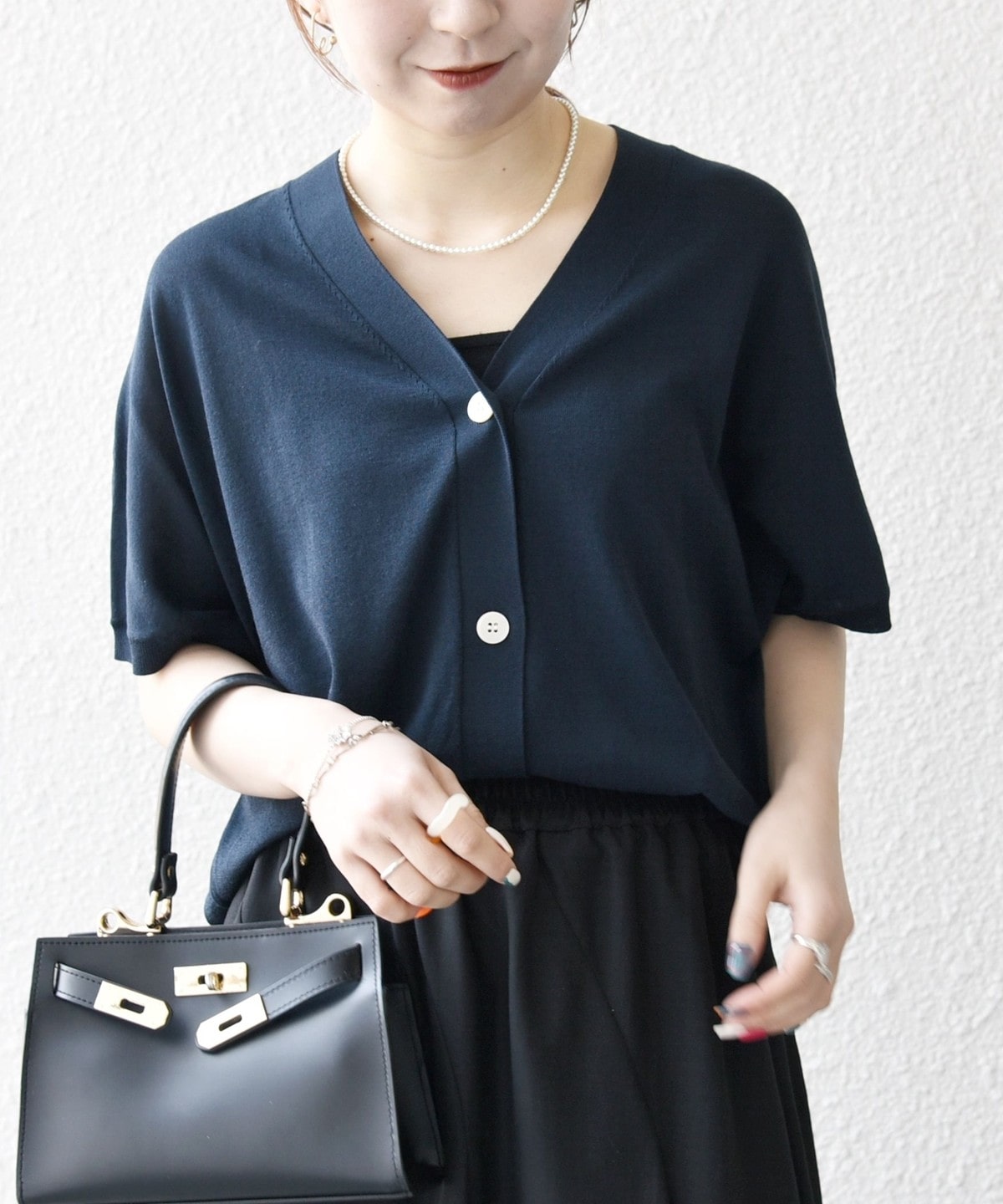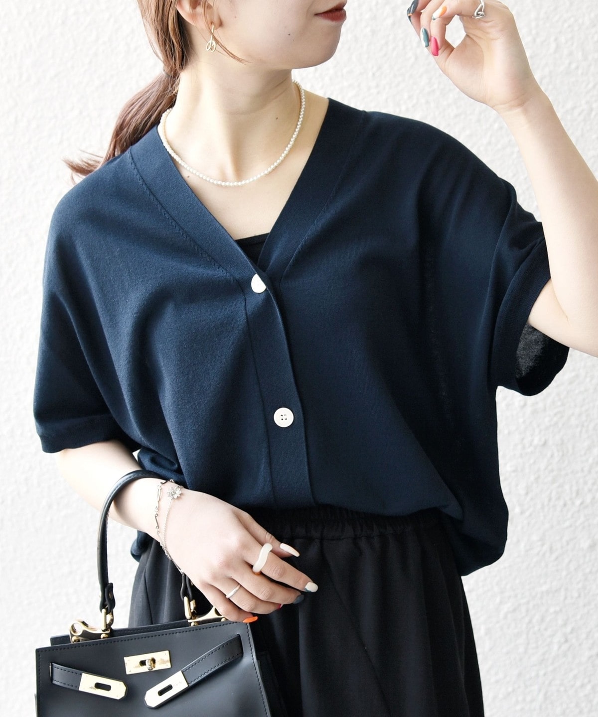 《一部予約》SHIPS any:〈接触冷感/手洗い可能〉Vネック ドルマン ミディ カーディガン