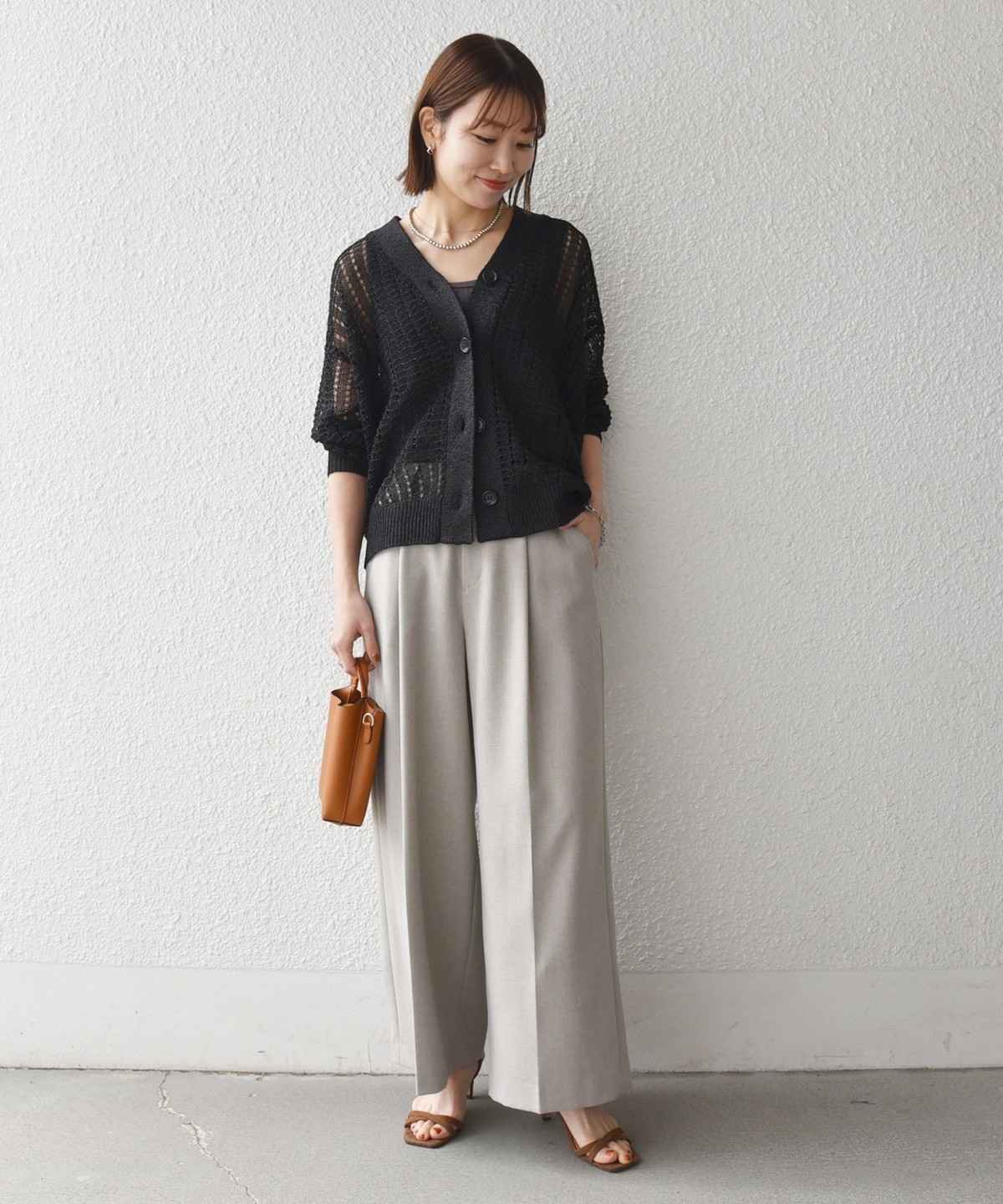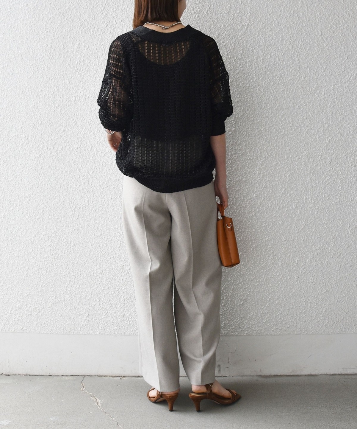 編地に特徴がありますが、あえてプリントのボトムを合わせた夏らしいスタイリングも◎
