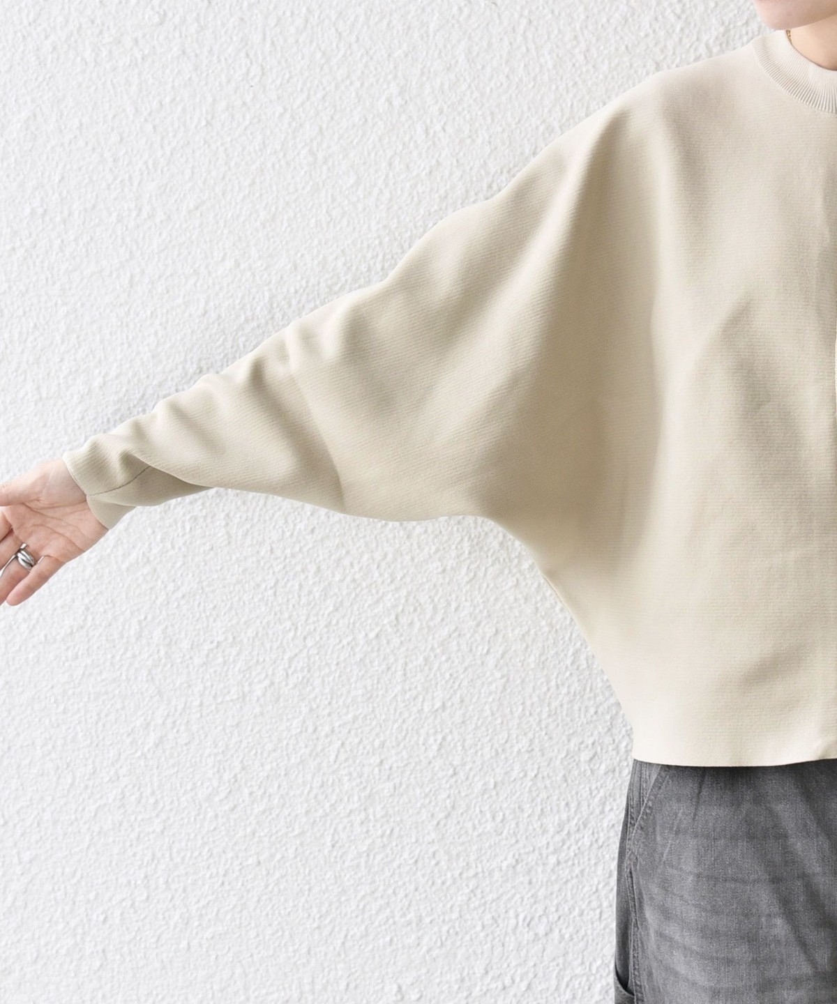 ドルマンスリーブの立体感あるシルエットとボリューム感は柔らかい雰囲気を演出。