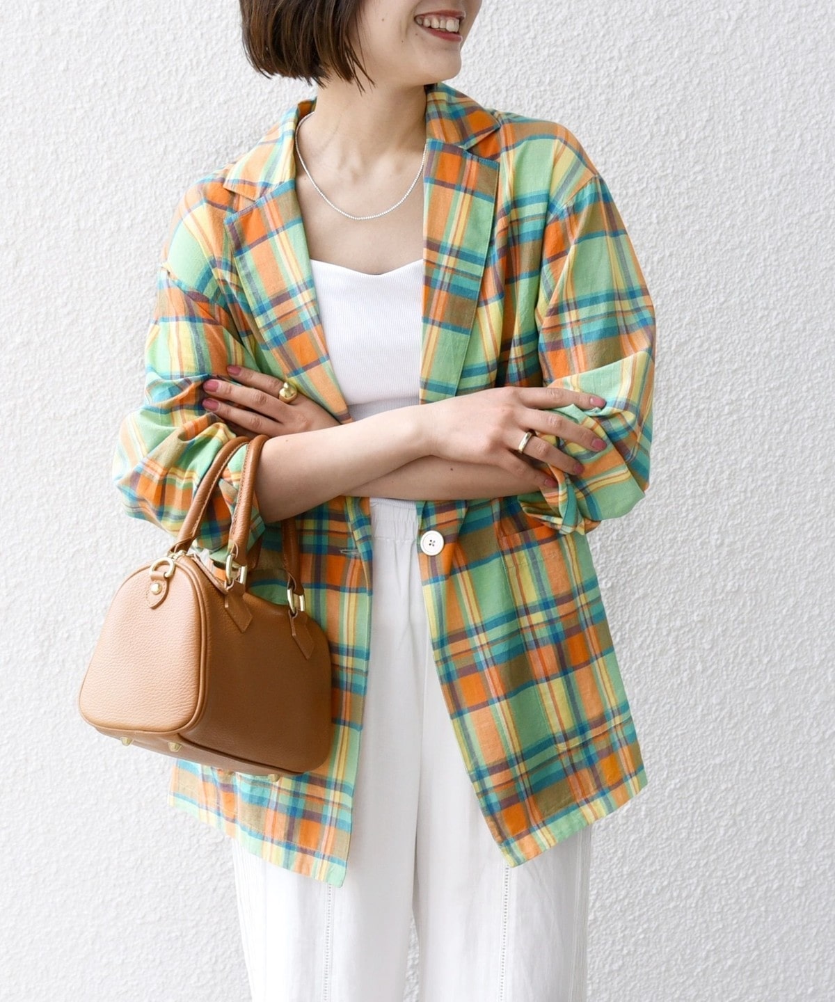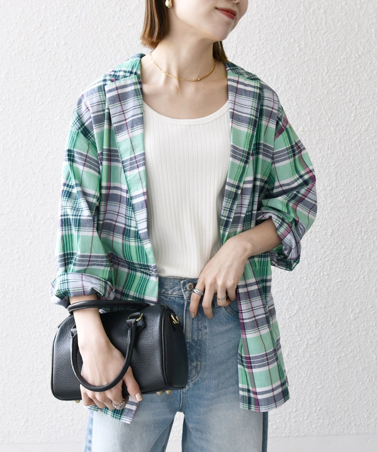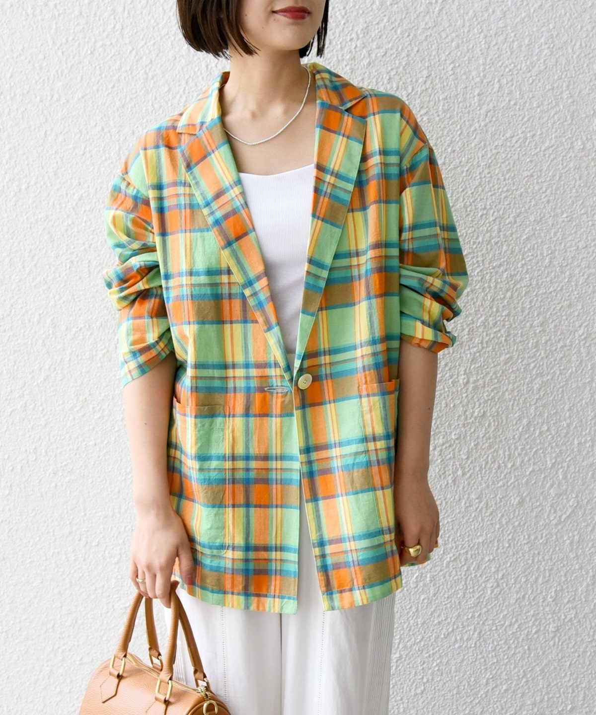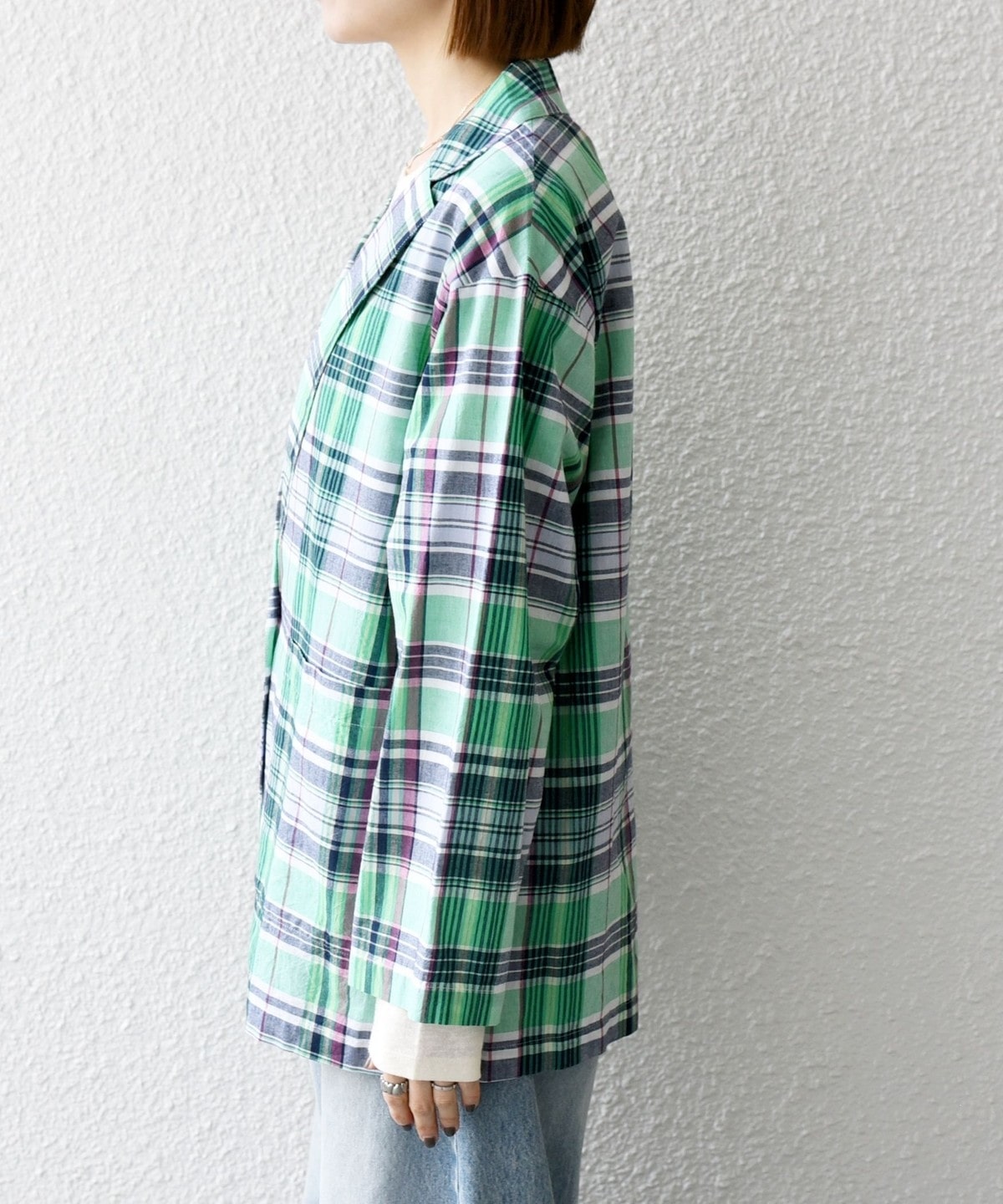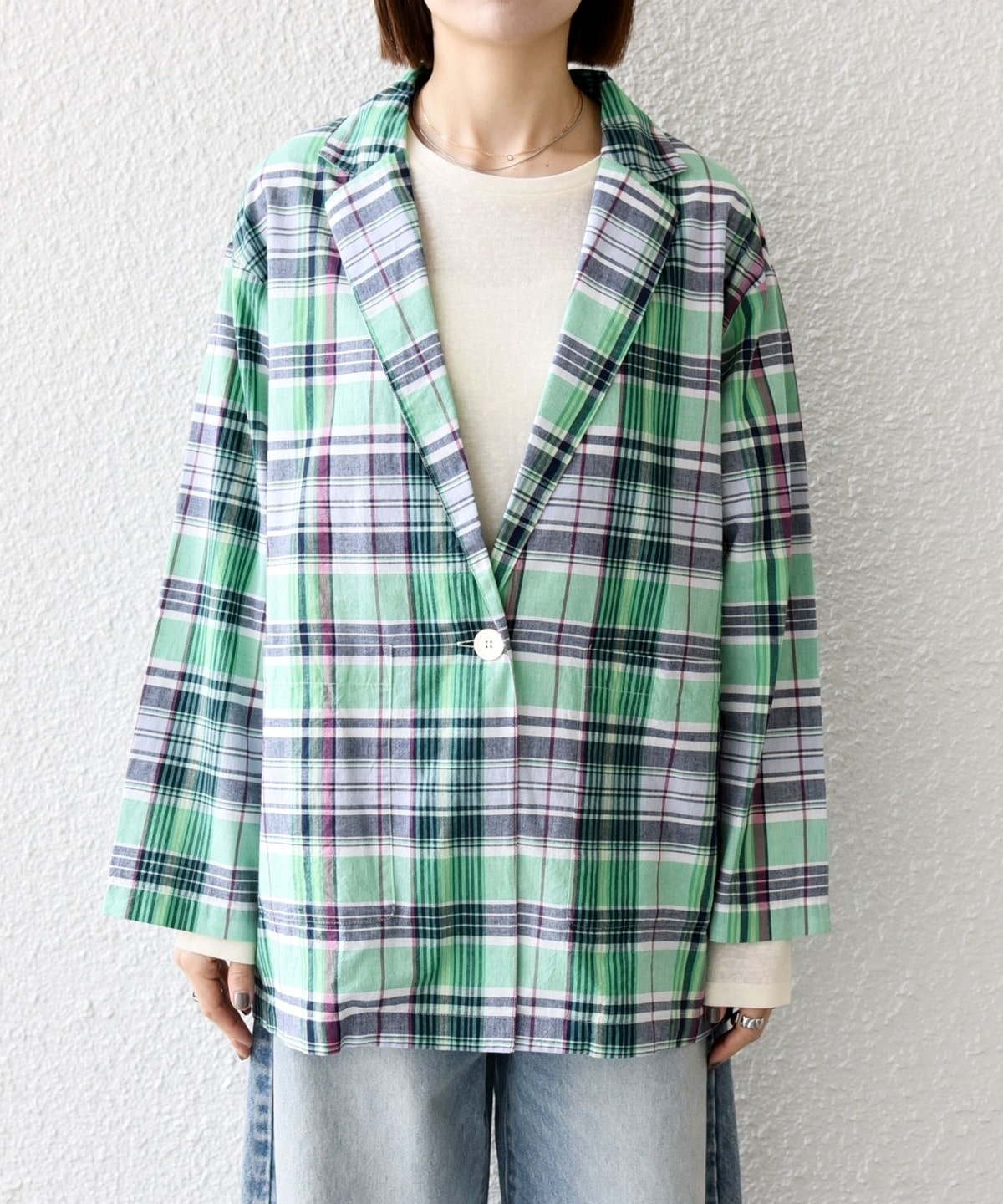 夏らしいマドラスチェックが目を惹く、オーバーサイズのテーラードジャケット。