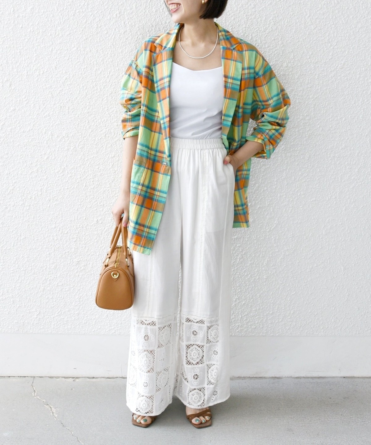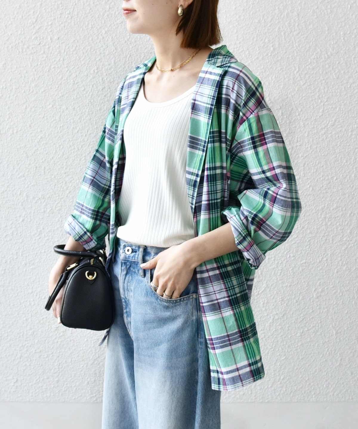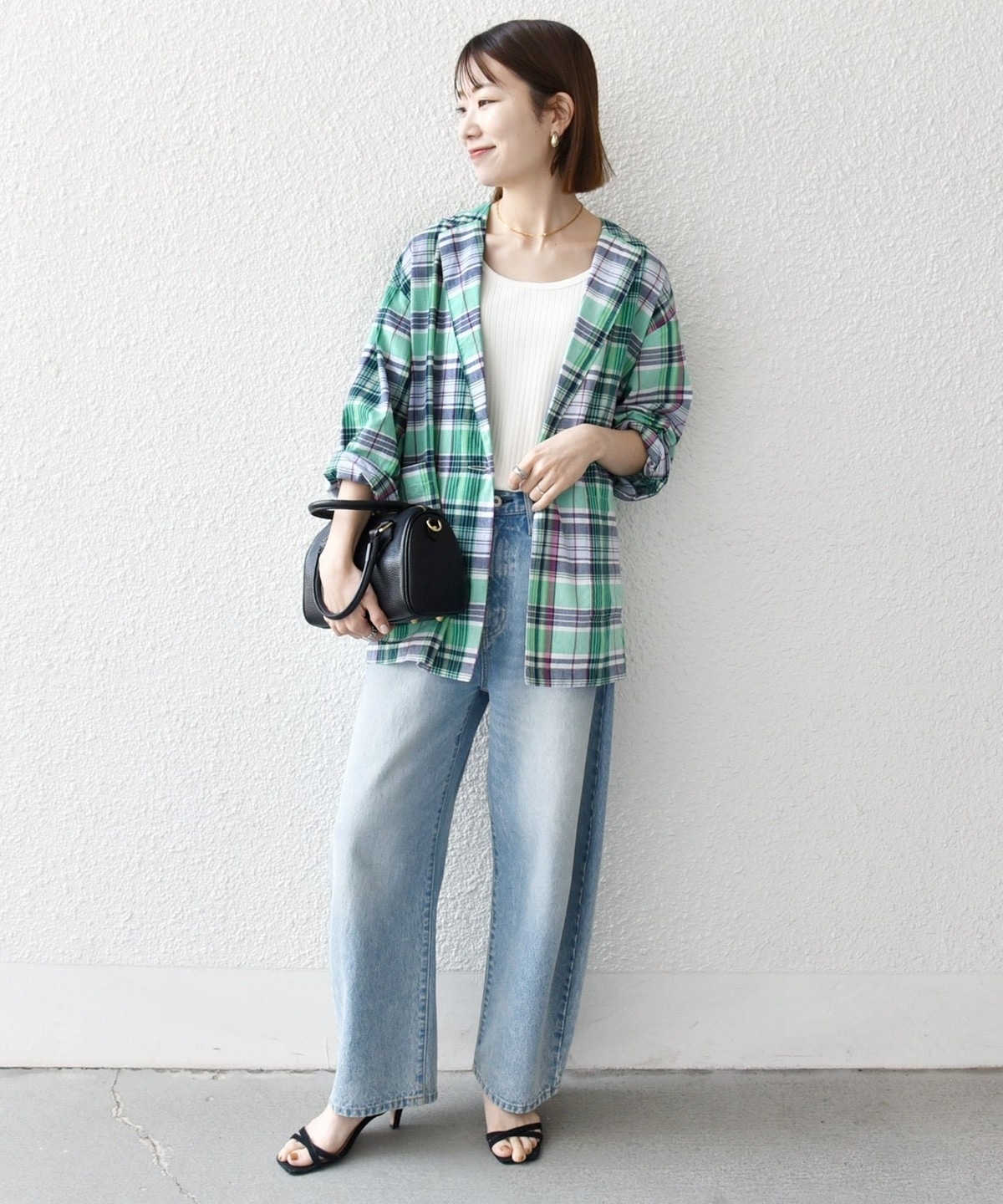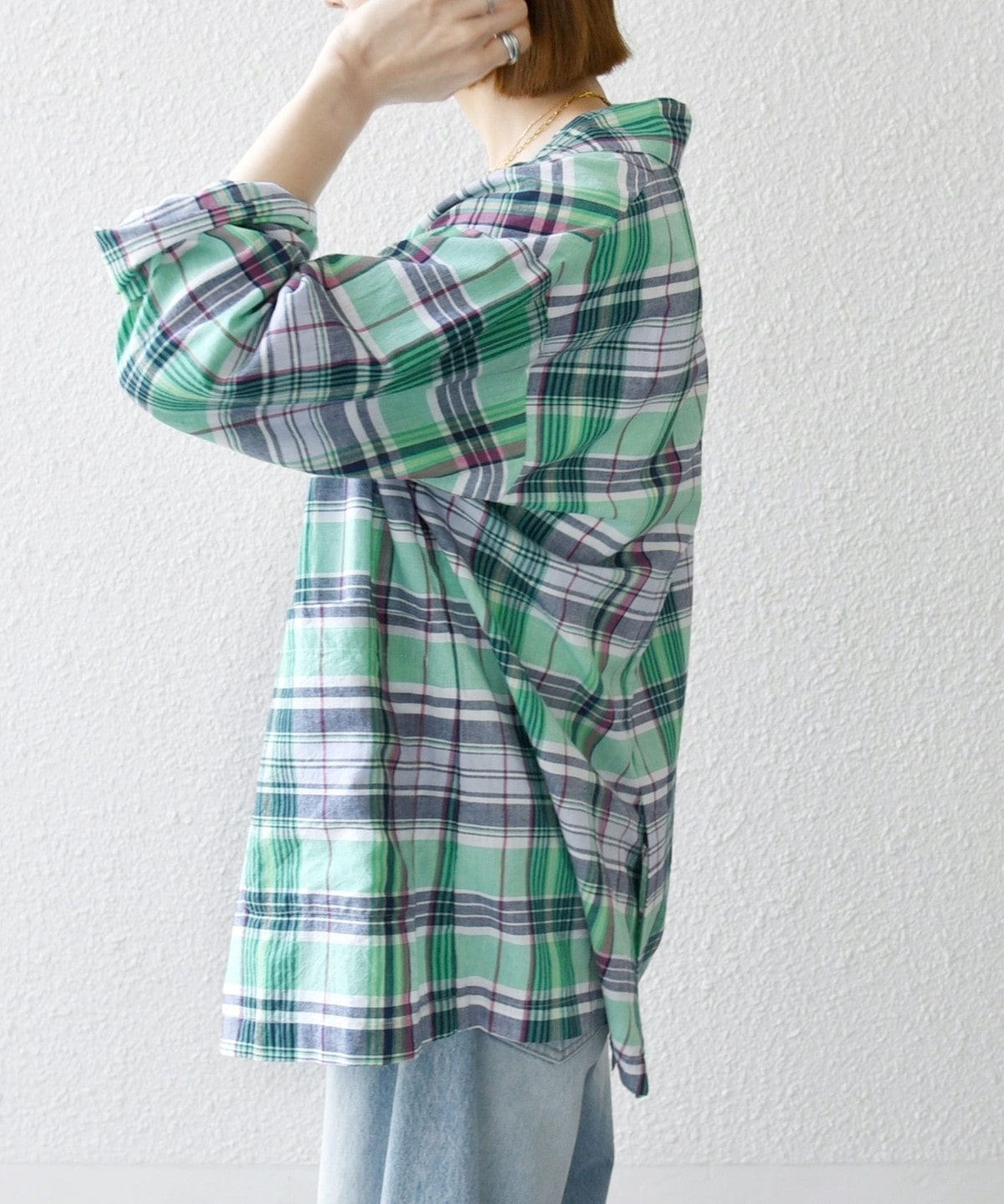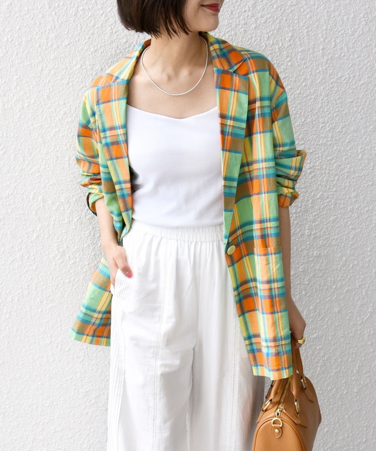 夏らしいマドラスチェックが目を惹く、オーバーサイズのテーラードジャケット。