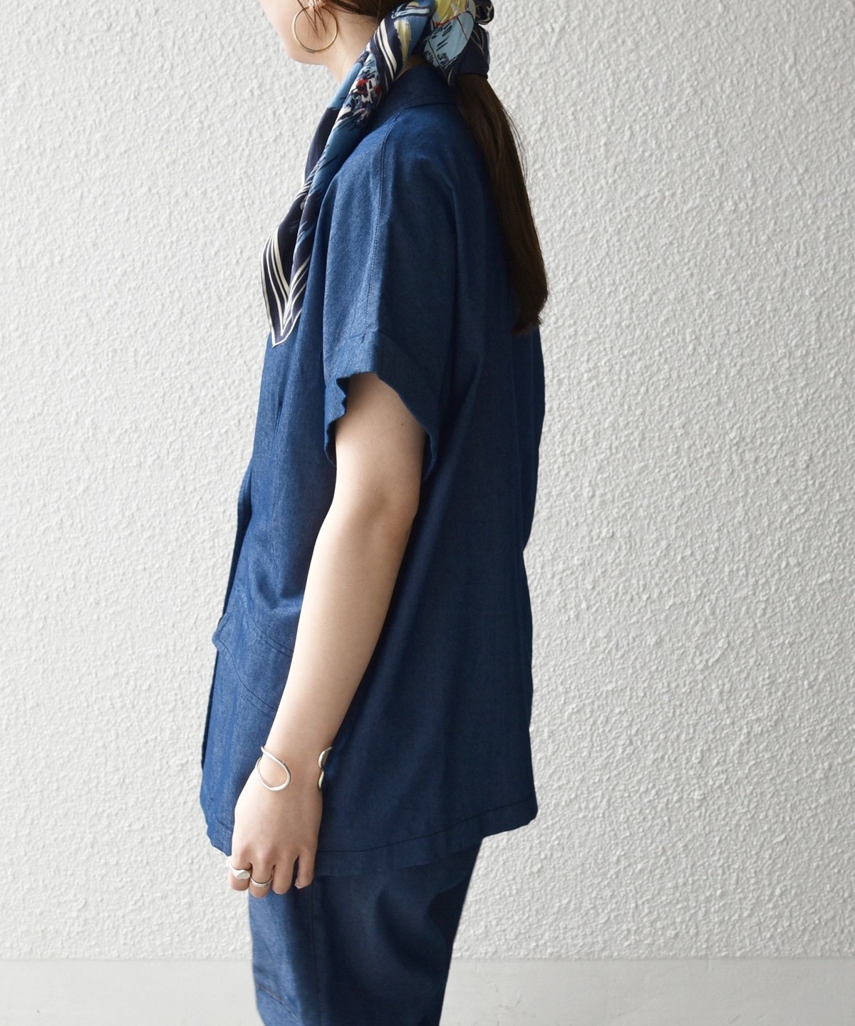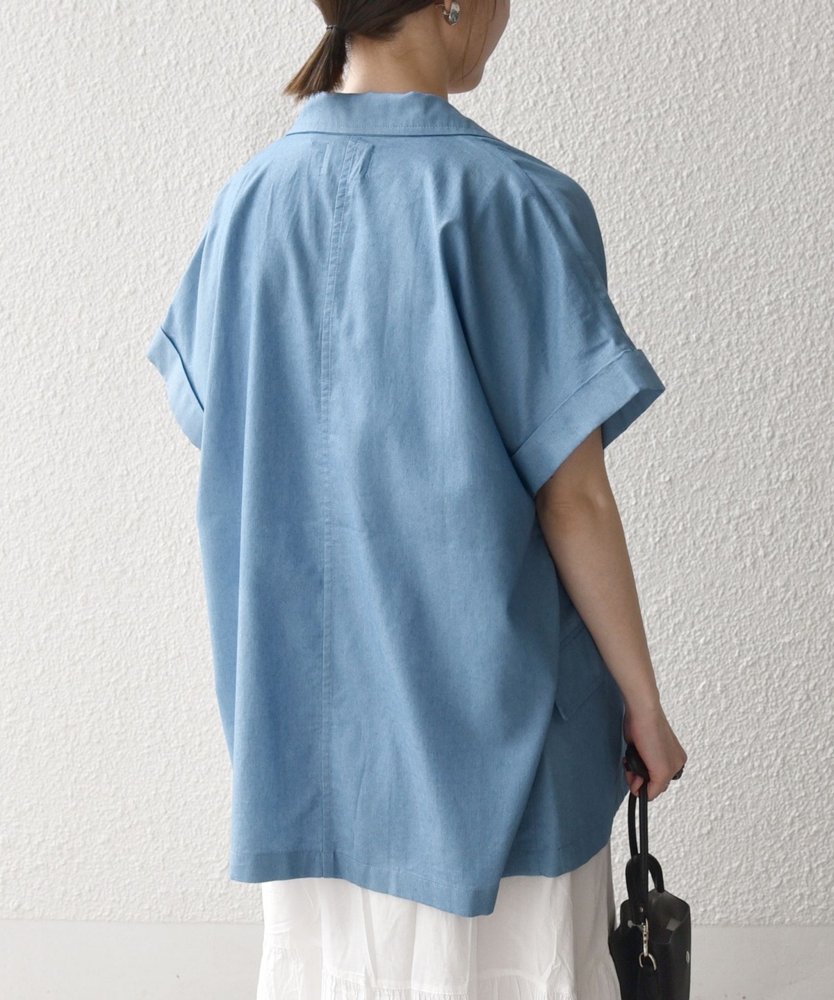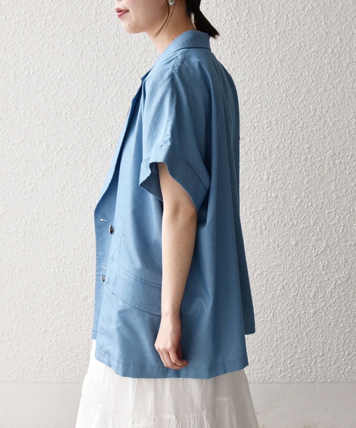 ヒップが隠れる着丈と、リラックス感のあるボックスシルエットでさっと羽織るだけでバランスよく決まります。