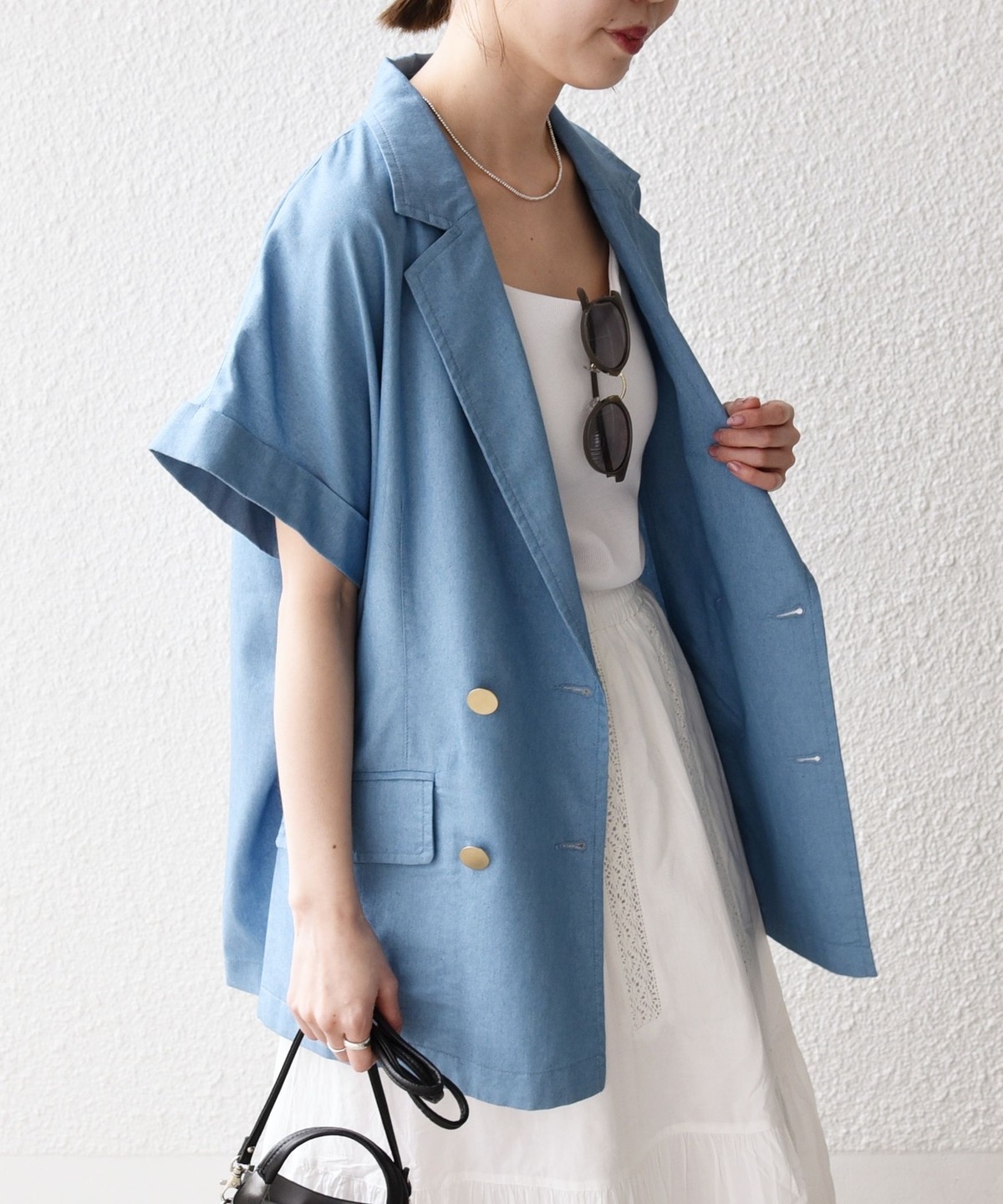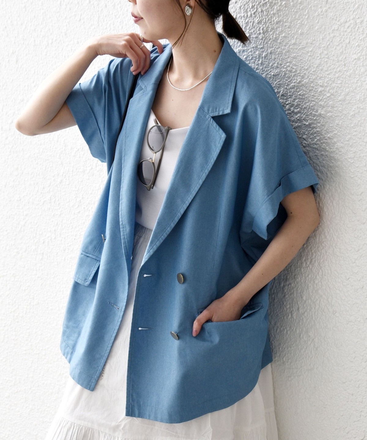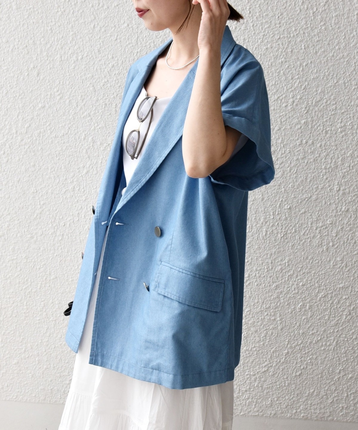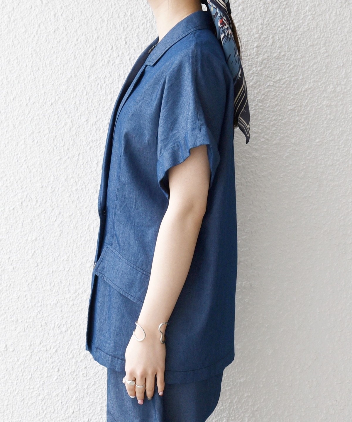 ヒップが隠れる着丈と、リラックス感のあるボックスシルエットでさっと羽織るだけでバランスよく決まります。