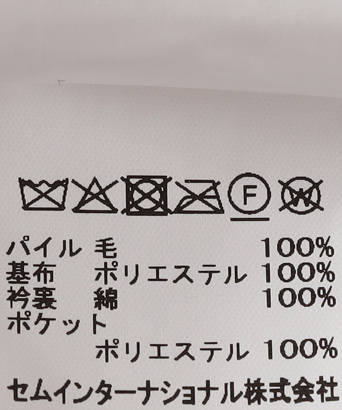 素材:パイル: 毛100%, 基布: ポリエステル100%, 衿裏: 綿100%, ポケット: ポリエステル100%
