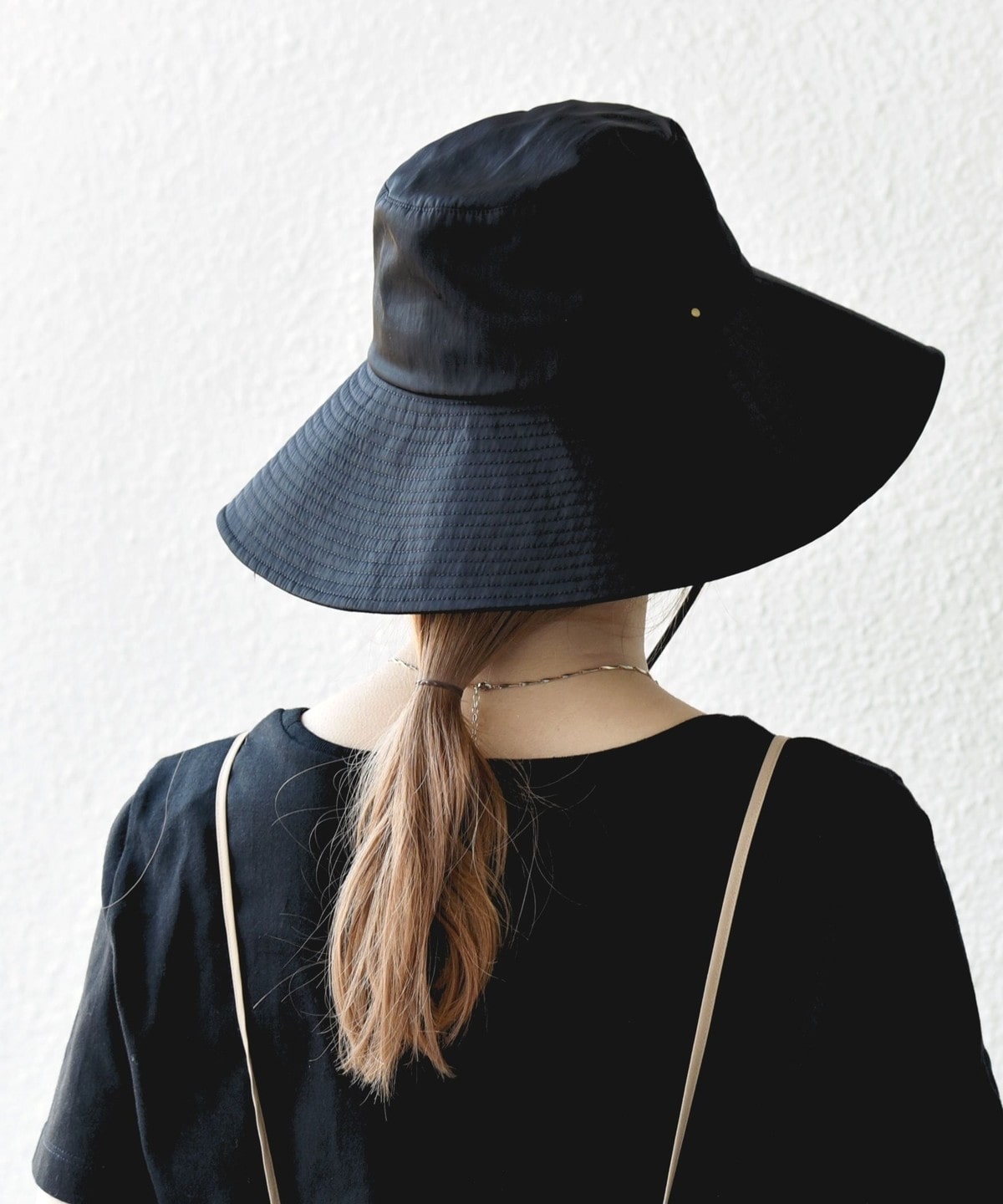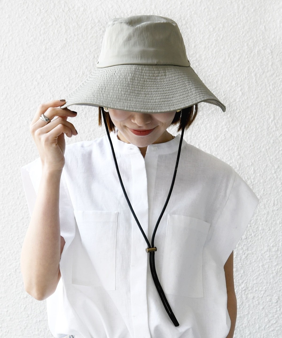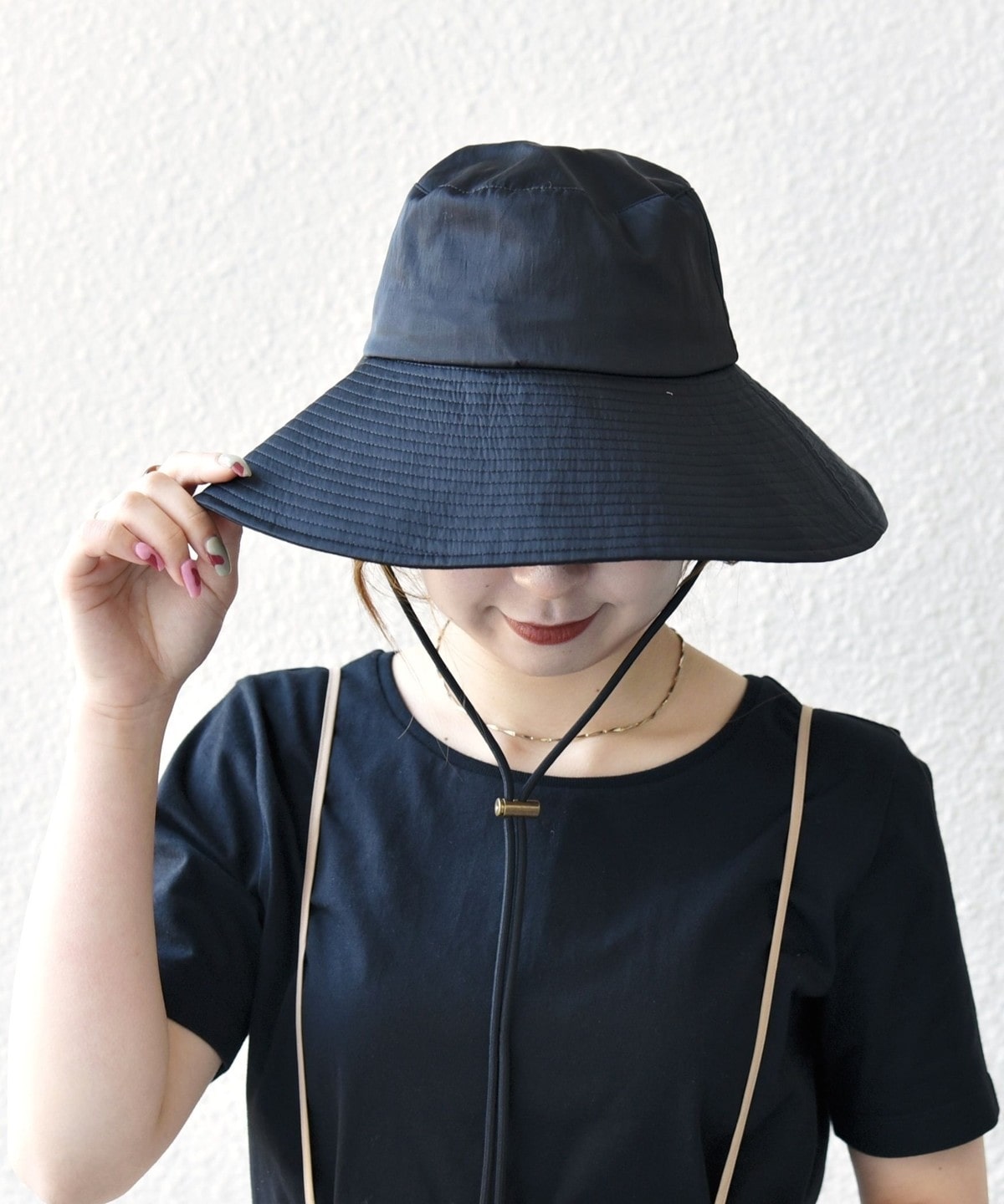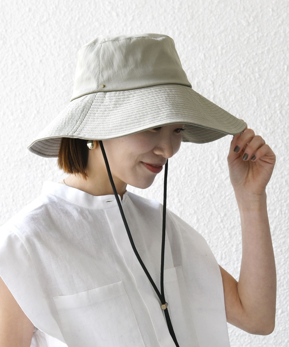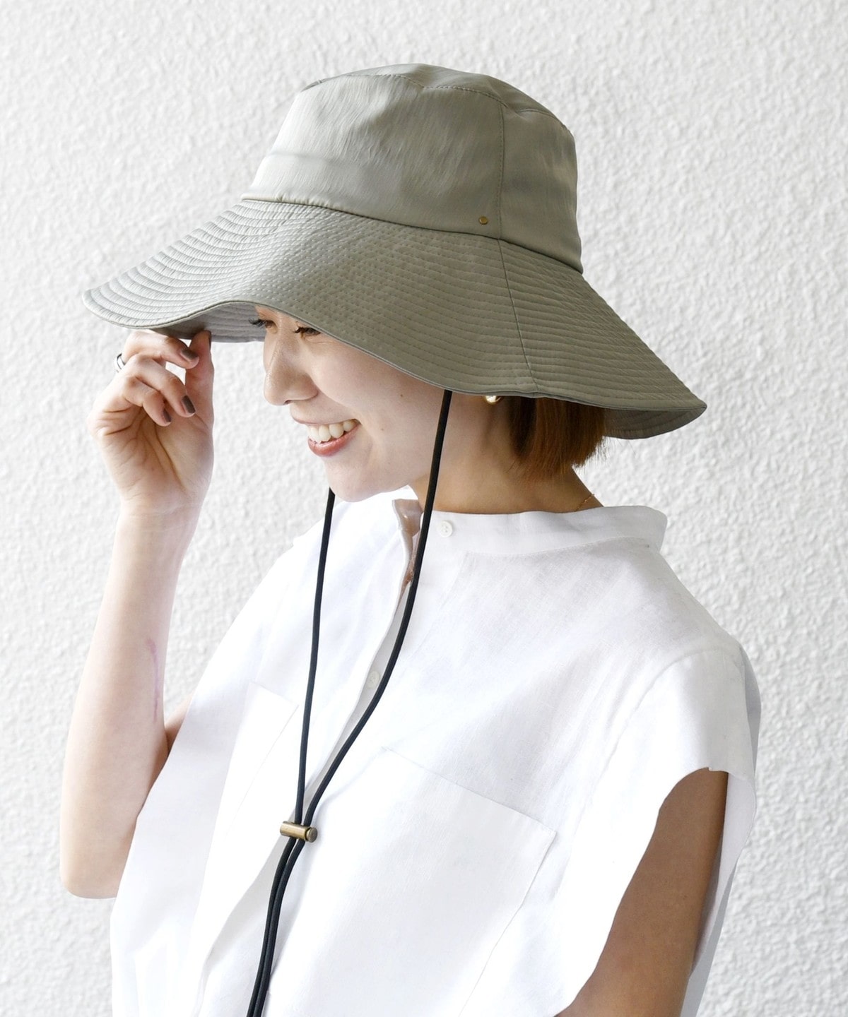 UVカットと撥水加工、接触冷感機能付きの、お出かけに最適なつば広ハット。
