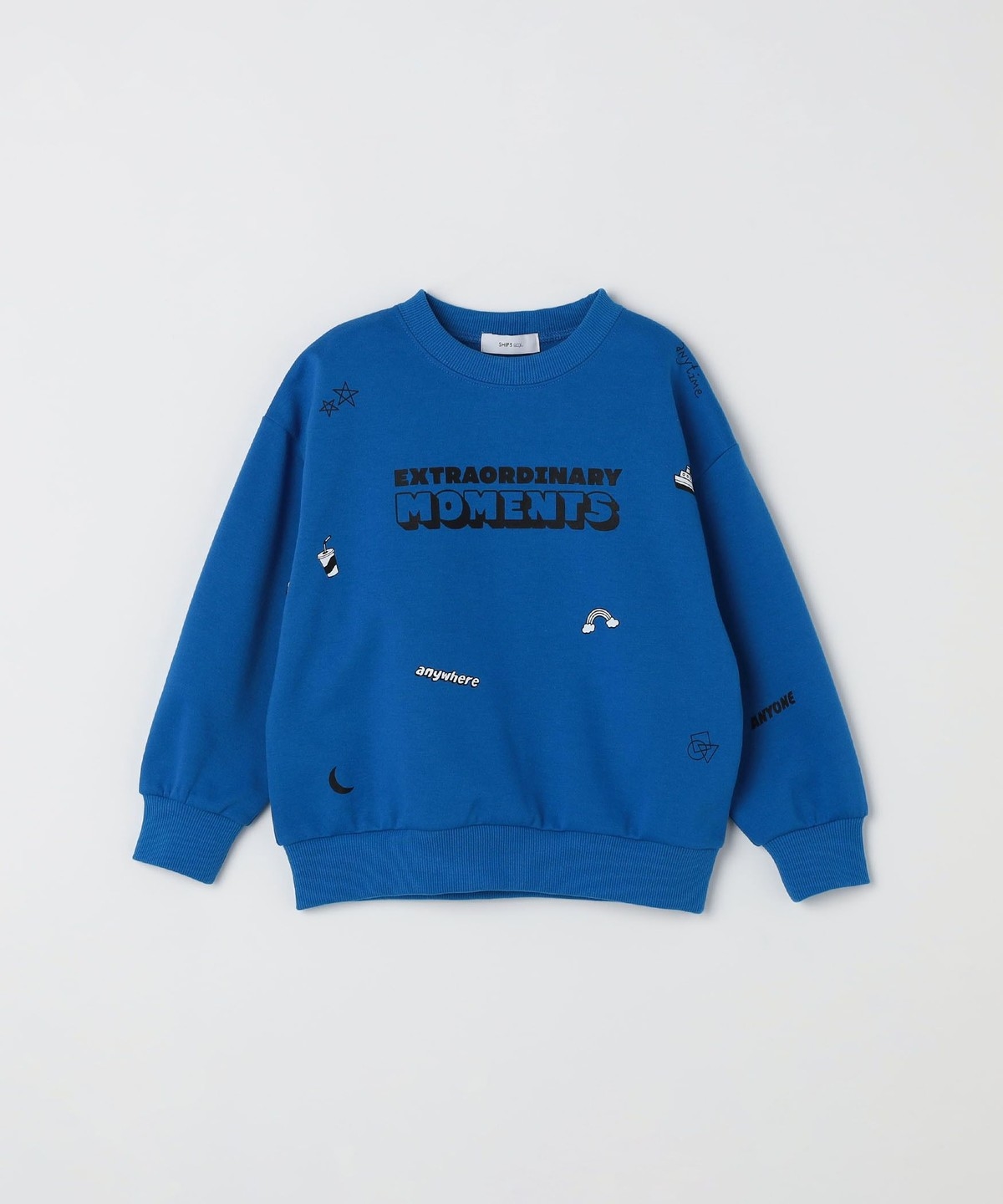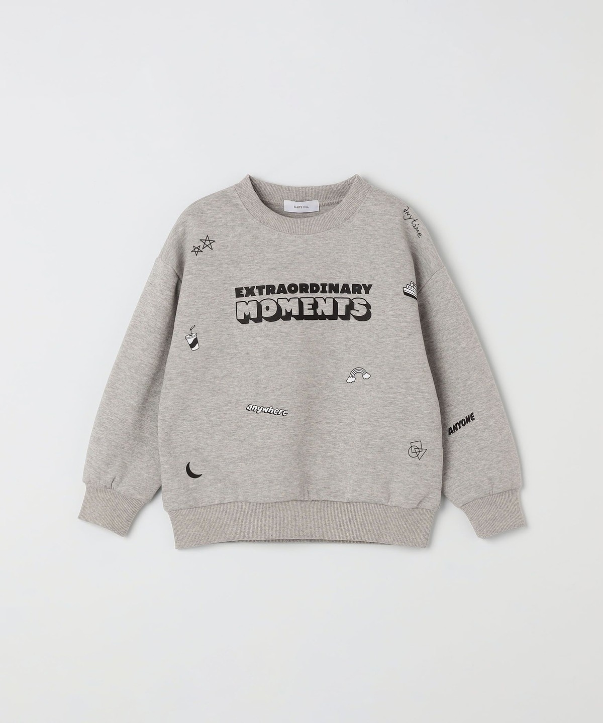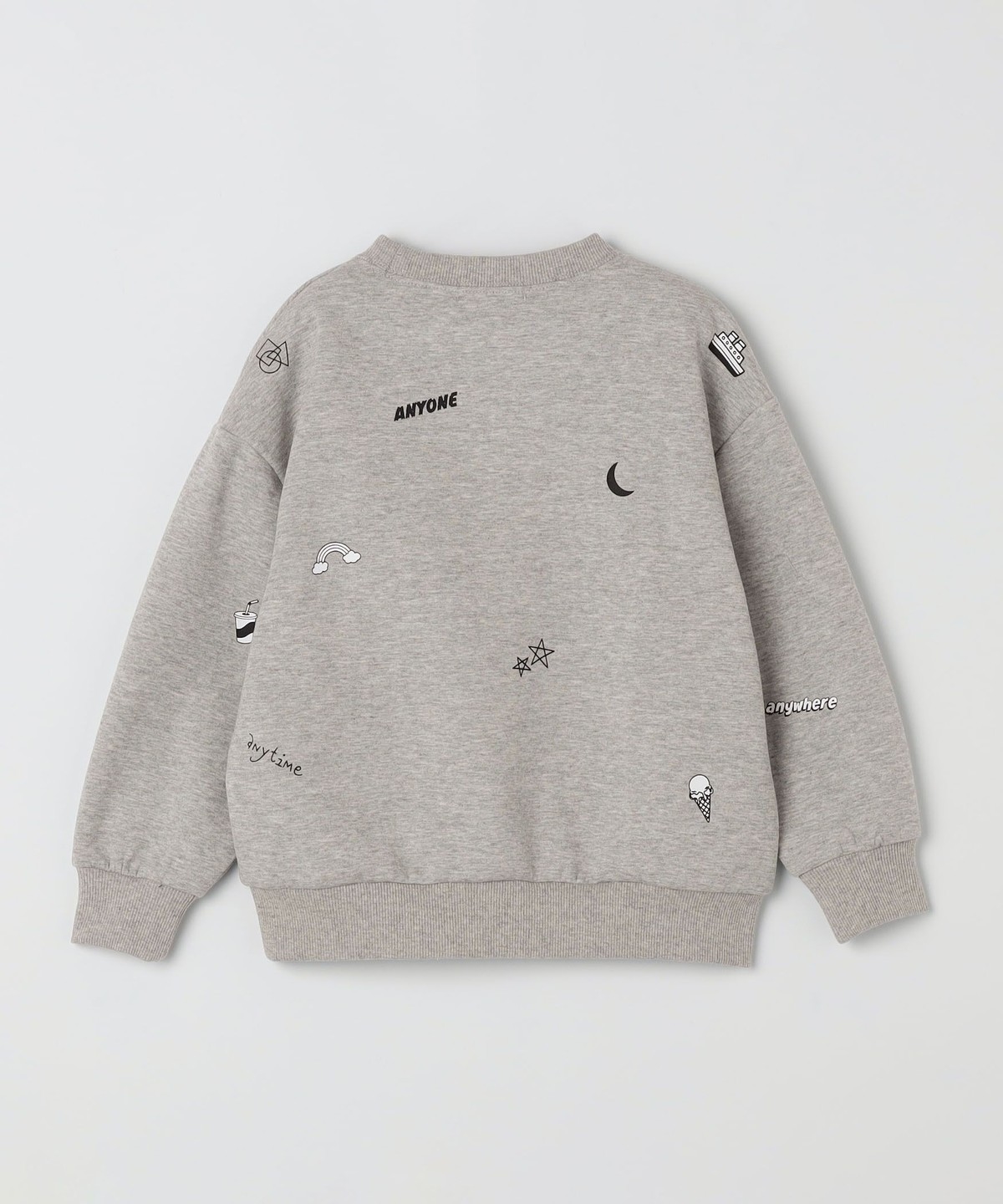 全体に散りばめた可愛らしいデザインがポイントのスウェット【素材特性】肌触りがなめらかなポンチ素材を使用。
