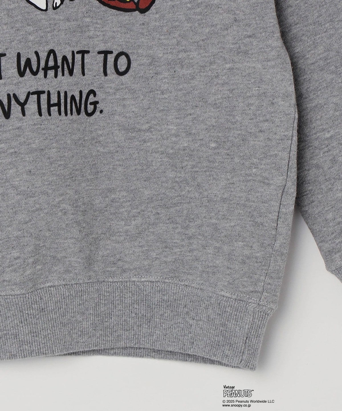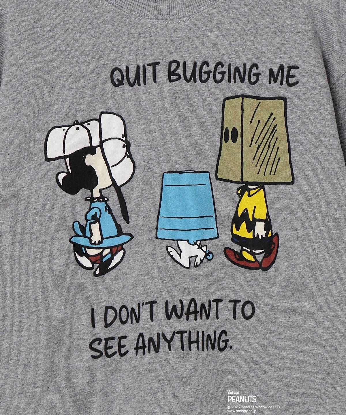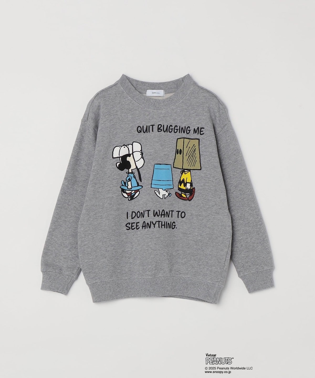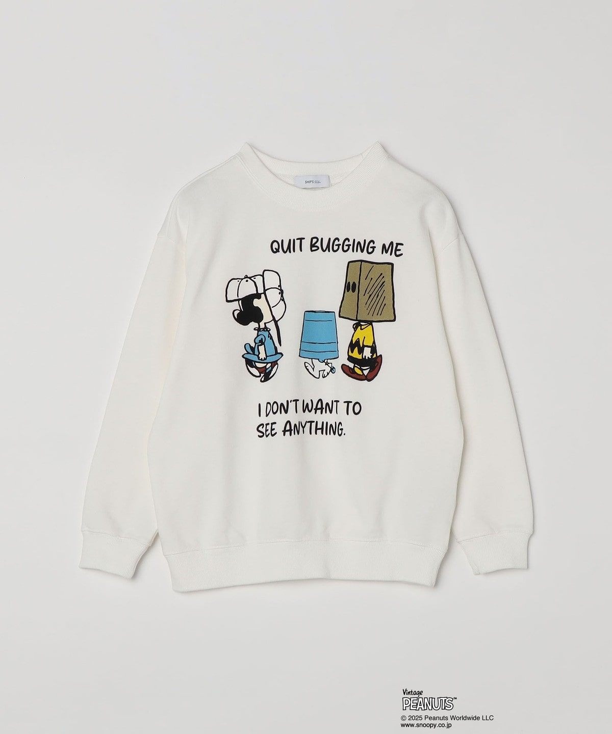 PEANUTSのキャラクターの顔を隠したハイドグラフィックのスウェット。