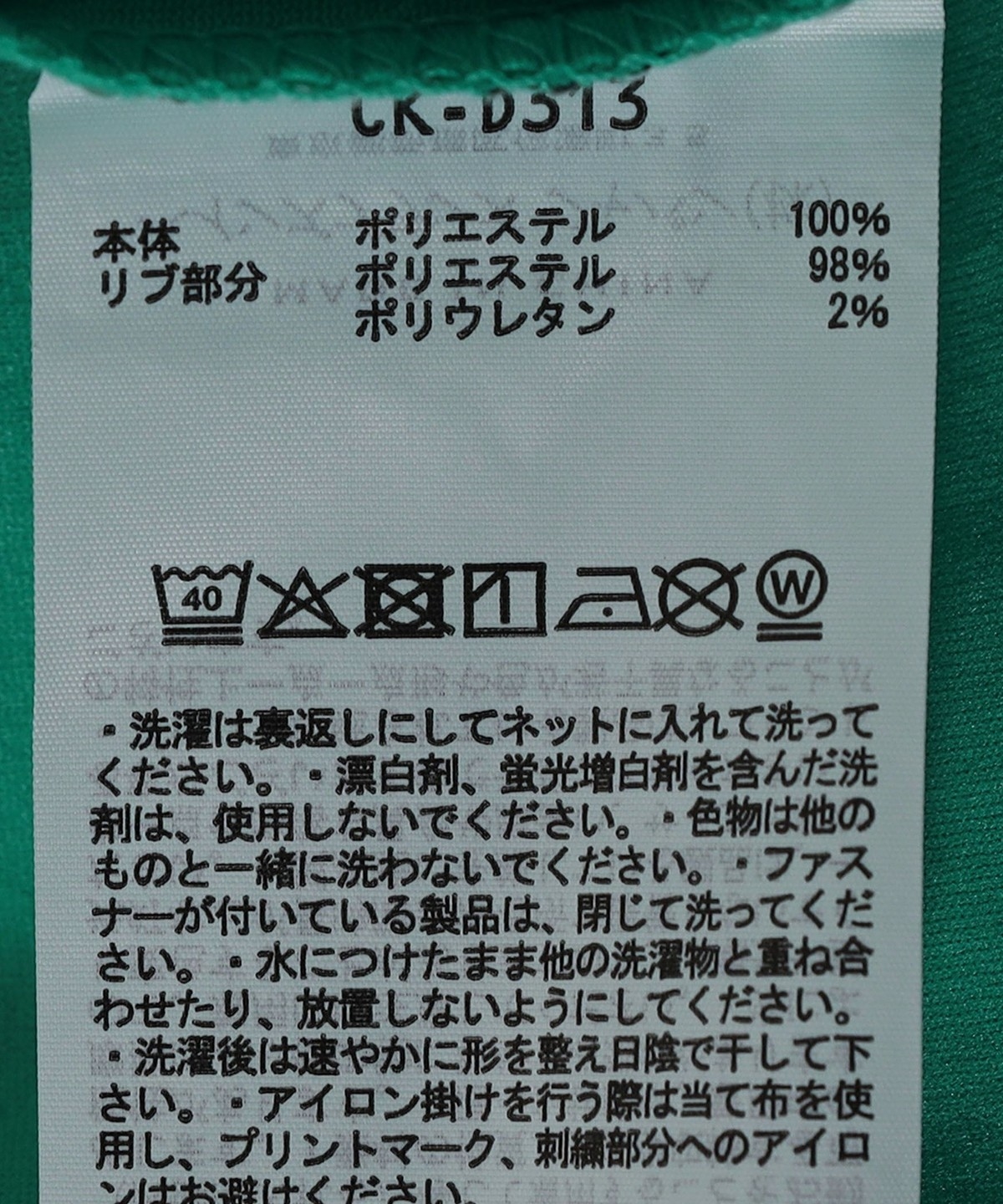 素材:本体: ポリエステル100%, リブ部分: ポリエステル98%, ポリウレタン2%