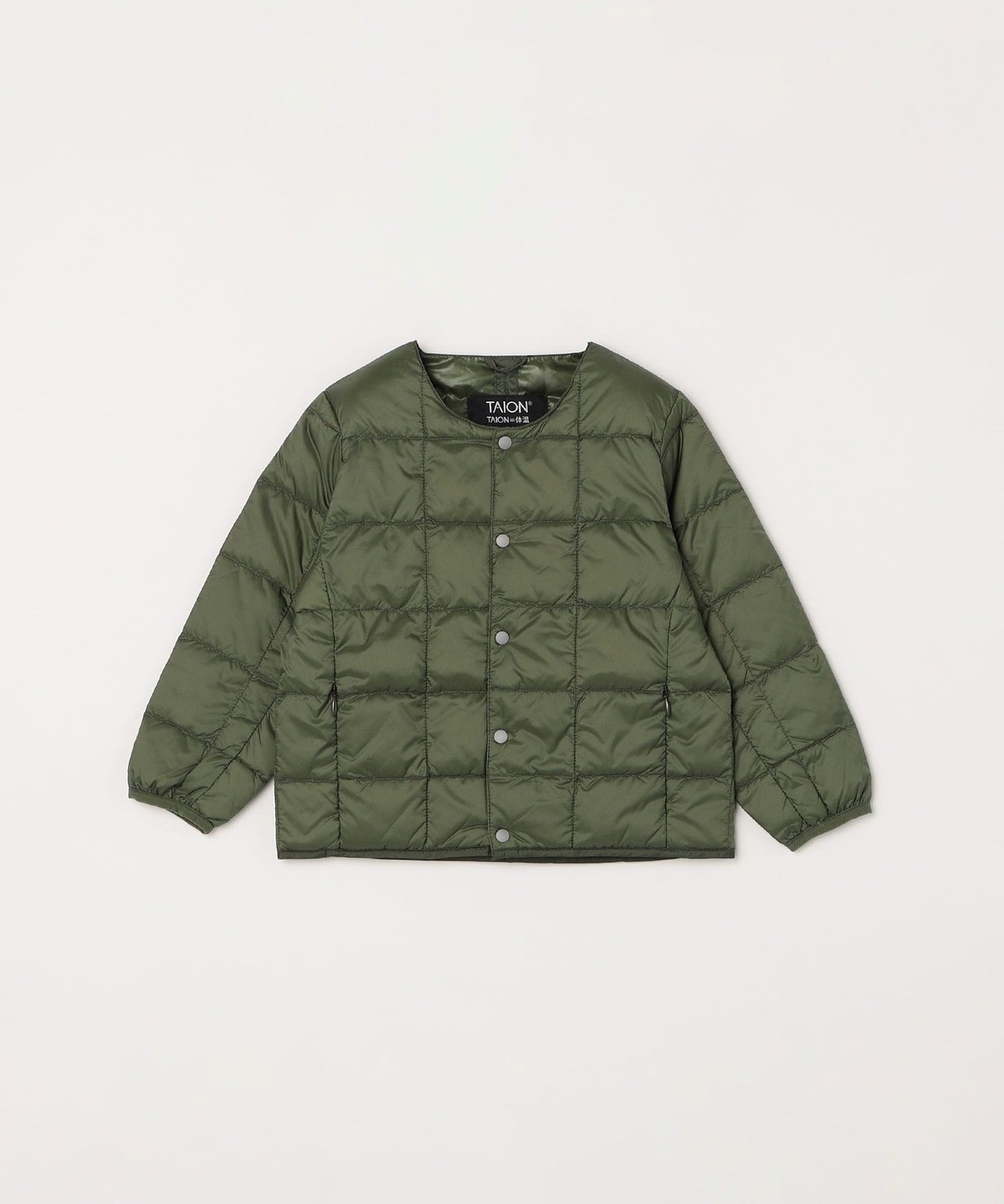 4. TAION: クルーネック ボタン ダウン カーディガン<KIDS> オリーブ