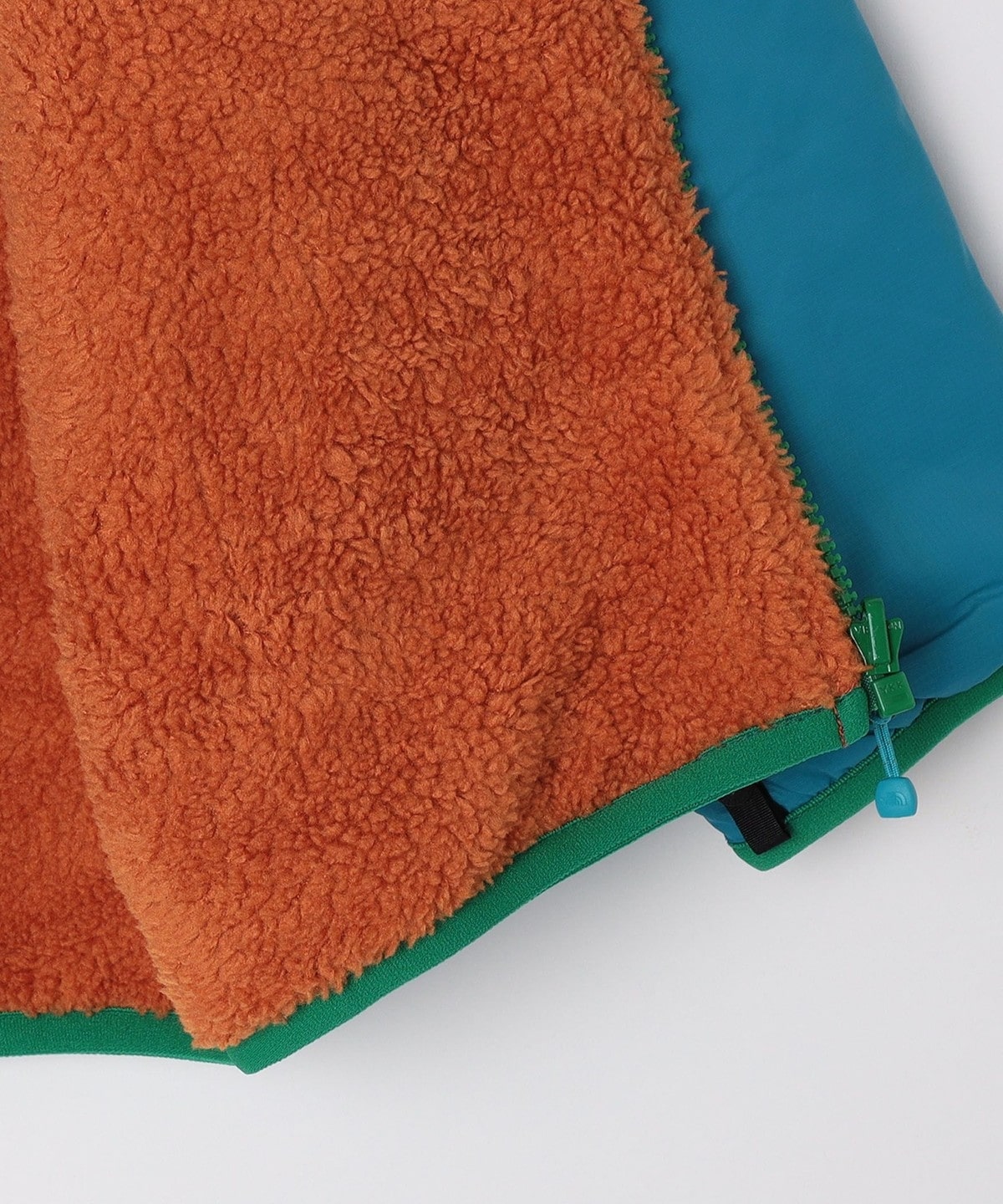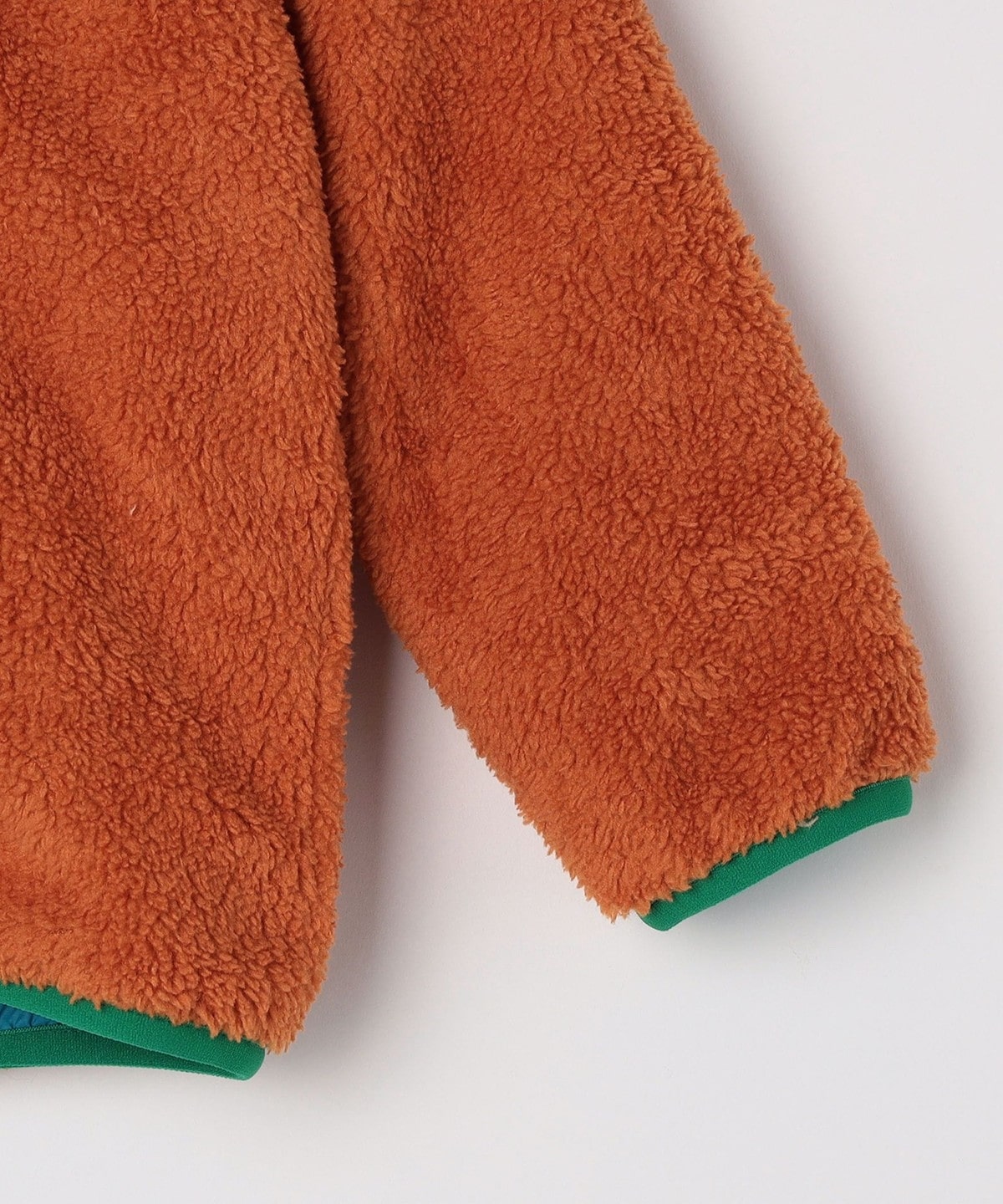フリース面は毛足があり保温性に優れたリサイクルポリエステルのシェルパフリースが採用されています。
