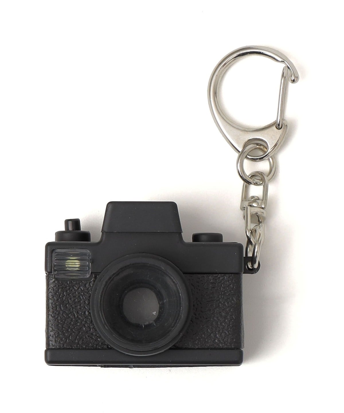 ボタンを押すとフラッシュが光ってシャッター音が鳴る、 カメラのキーリング。