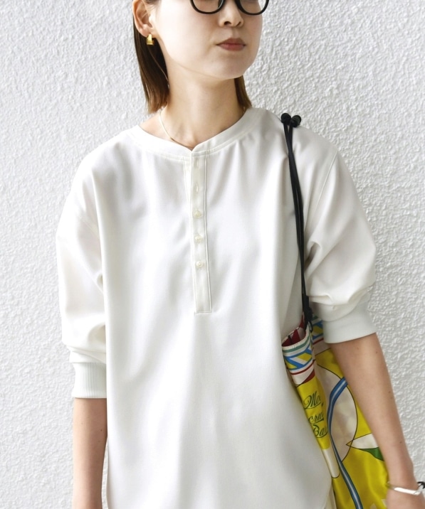 《予約》〈手洗い可能〉IMPERIAL LINEN 混 バンドカラー スキッパー シャツ