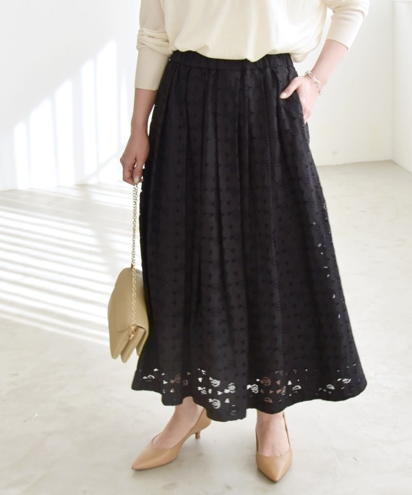 quaranciel:〈洗濯機可能〉エンブロイダリー フレア ロング スカート