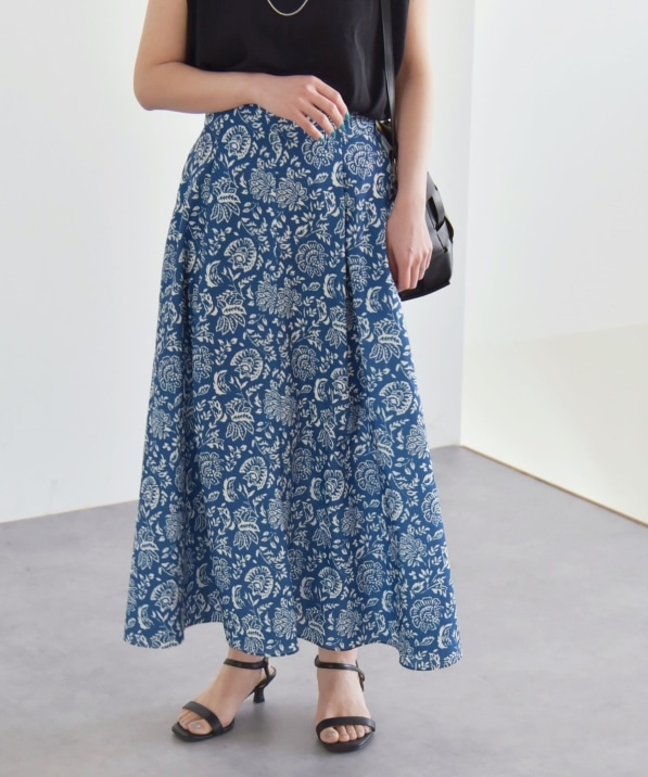 quaranciel: SPRINTEX フラワーパネル柄 スカーフ フレア スカート