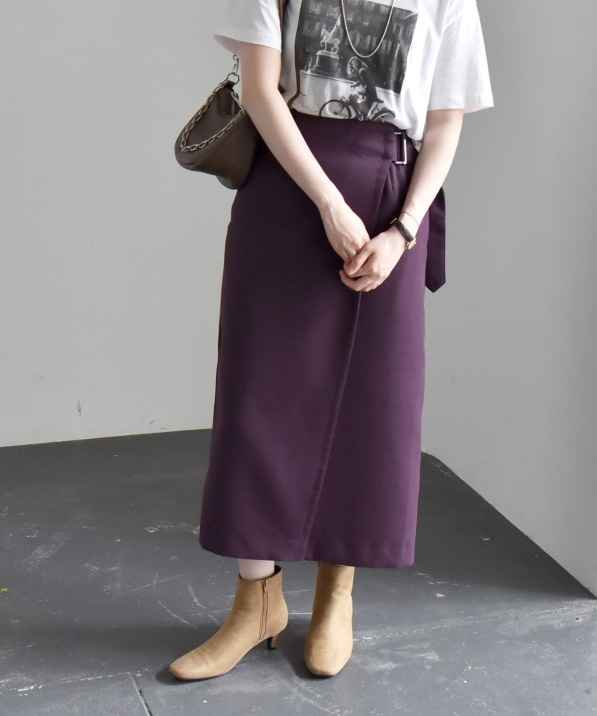 quaranciel:〈洗濯機可能〉デニムライク バックル ベルト ラップ スカート