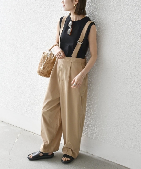 bon_meur:〈手洗い可能〉ロープ編み コットン ワイド ギャザー サロペット