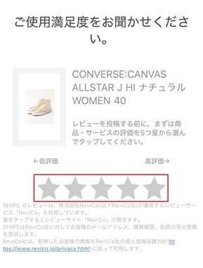 • レビュー依頼メール内の評価レートをタップすると、レビュー投稿フォームが表示されます。