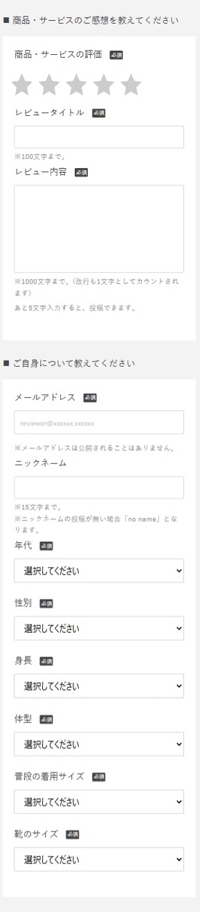 • ・「レビューを書く」ボタンが表示されていない商品はレビューを投稿することができません。