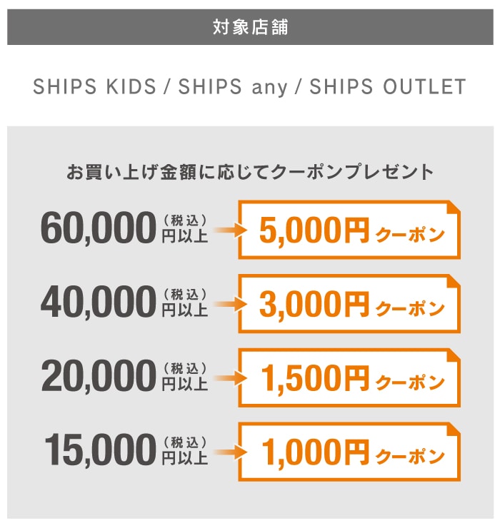 ※各クーポンはキャンペーン期間中、店舗・SHIPS 公式オンラインショップでそれぞれ1回限りご利用いただけます。