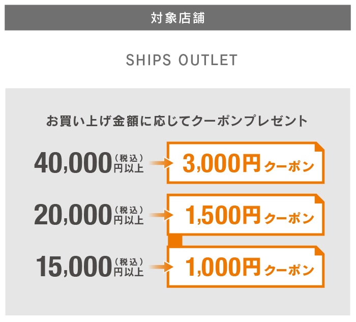 ※各クーポンはキャンペーン期間中、SHIPS OUTLET店舗限定でそれぞれ1回限りご利用いただけます。
