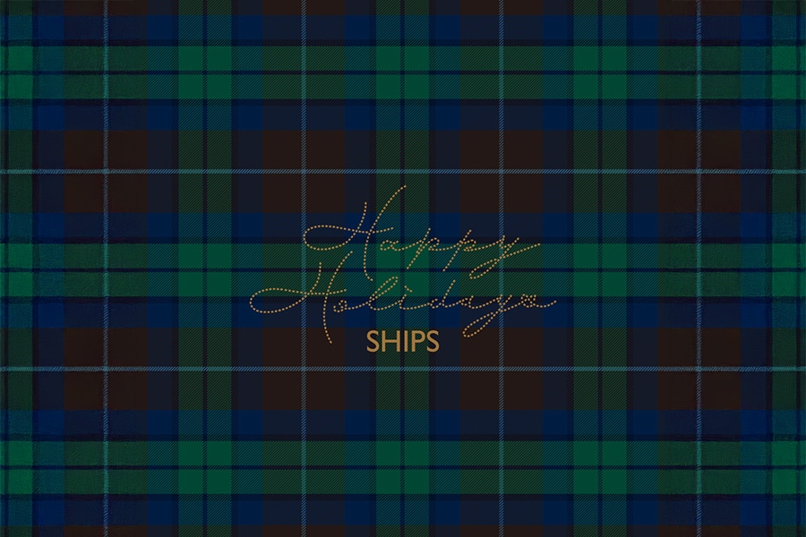 公式アプリでは“SHIPS HAPPY HOLIDAYS”限定デザインの壁紙をプレゼント。冬の空気が一段と深まるこの季節、スマートフォンにタータンチェックを設定して、ホリデー気分をさりげなく楽しもう。