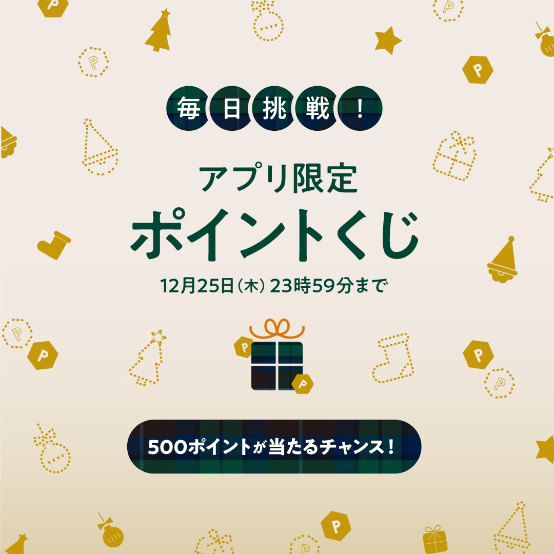 公式アプリで、SHIPS Member’s Clubポイントがその場で当たるくじを実施。11/28(金)〜12/25(木)まで、毎日10名様に500ptをプレゼントします。期間中は1日1回、くじにチャレンジできます。詳細は公式アプリトップページにある「ポイントくじ」のバナーからご確認ください。 ※くじを引くには会員登録が必要となります。