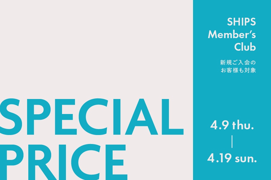 「SHIPS Member’s Club 会員様限定スペシャルプライス」を開催いたします。期間中、対象商品を最大30%OFFの特別価格でご購入いただけます。