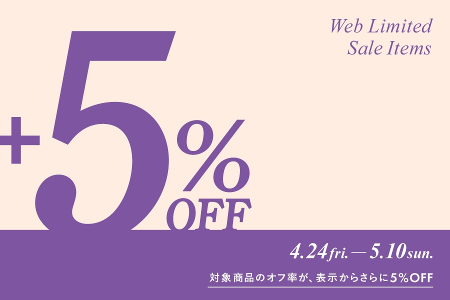 4/24(金)よりSALE品の対象商品がさらに+5%OFFとなるキャンペーンをWEB限定で開催いたします。
