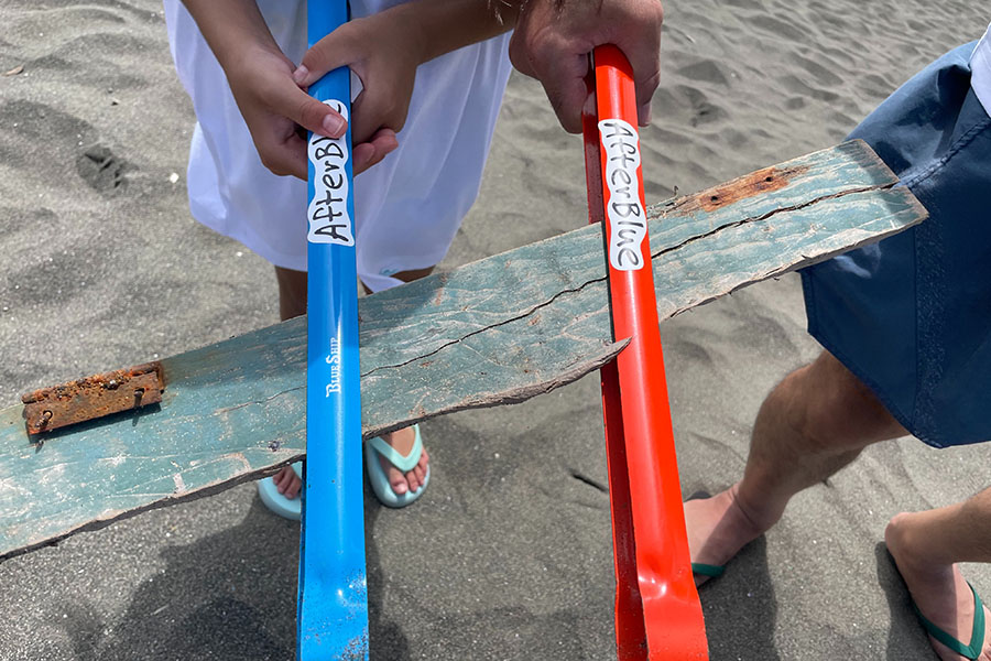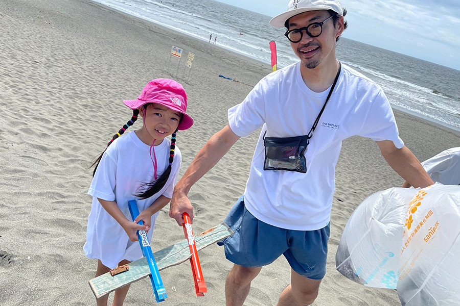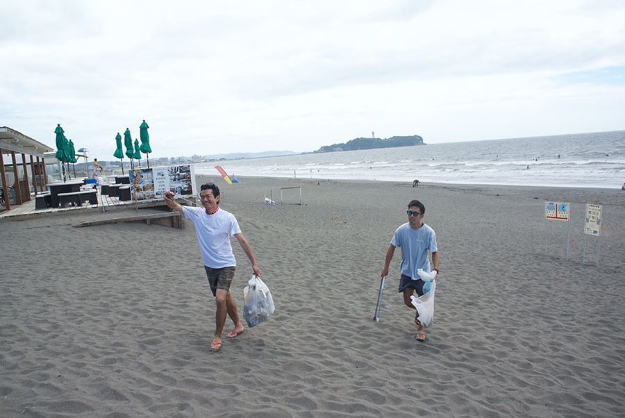 夏休みの終わりが近づく平日の開催ということもあって海はすいていましたが、前日までの波風の影響もあり大きなごみが少し目立ちました。
