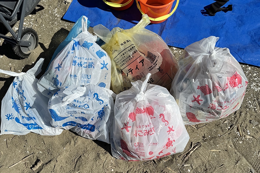 防波堤の消波ブロックの間にはペットボトルや、大きなプラスチックごみが挟まっていたり、鍬で砂浜を掘り起こすとマイクロプラスチックやライター等がたくさんあり、今回も楽しみながらしっかり回収することができました。