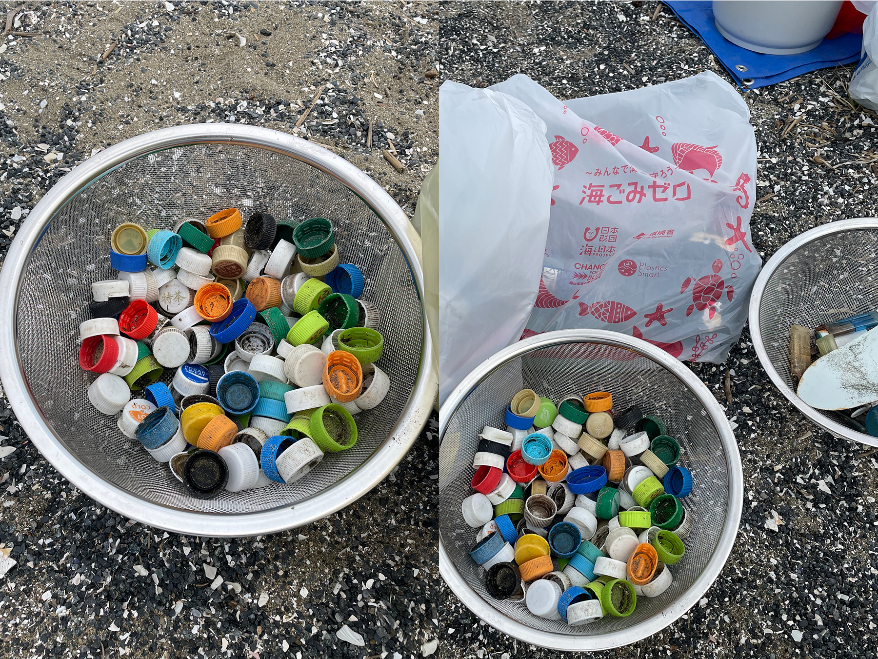 遠くから漂着されたと思われる外国語表記のごみ等もありましたが、その中でも特にペットボトルキャップが目立っておりました。