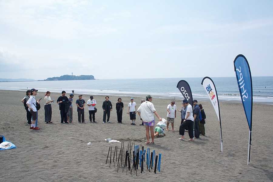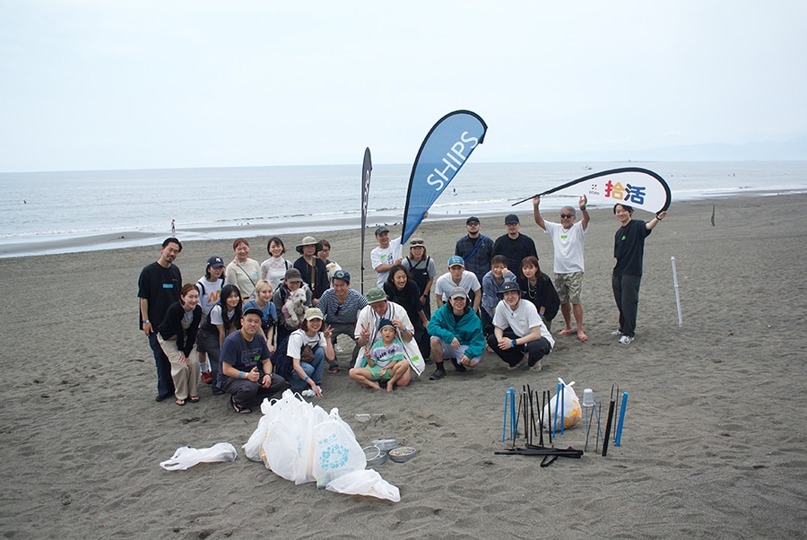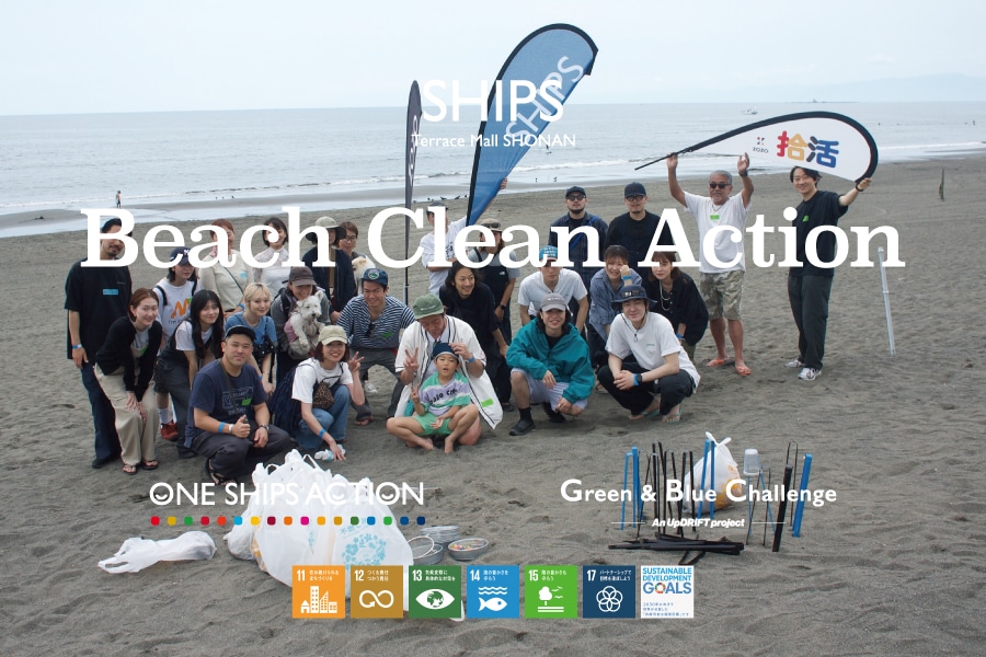 シップスでは30年以上にわたり、伊豆下田での下田ライフセービングクラブと連携したビーチクリーン活動を継続しています。この活動を広げる形で、「SHIPS Beach Clean Action」をSHIPSテラスモール湘南店のある神奈川県藤沢市・辻堂海岸にてボランティア活動として実施しています。SDGs目標14「海の豊かさを守ろう」の達成に貢献しながら、プラスチックごみや衣料品問題について考えるきっかけとなる地域貢献活動です。
