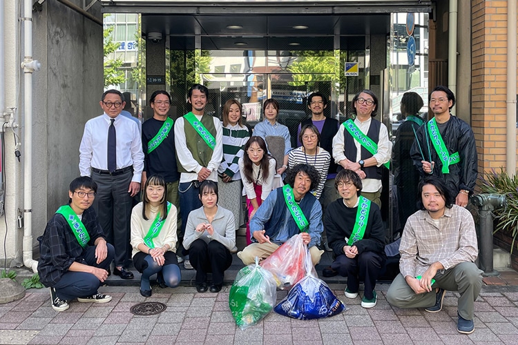 5人1組のチームでのごみ拾いは、同じ本社内に勤めていてもなかなか話すことのないスタッフとの交流もありいい機会になっています。