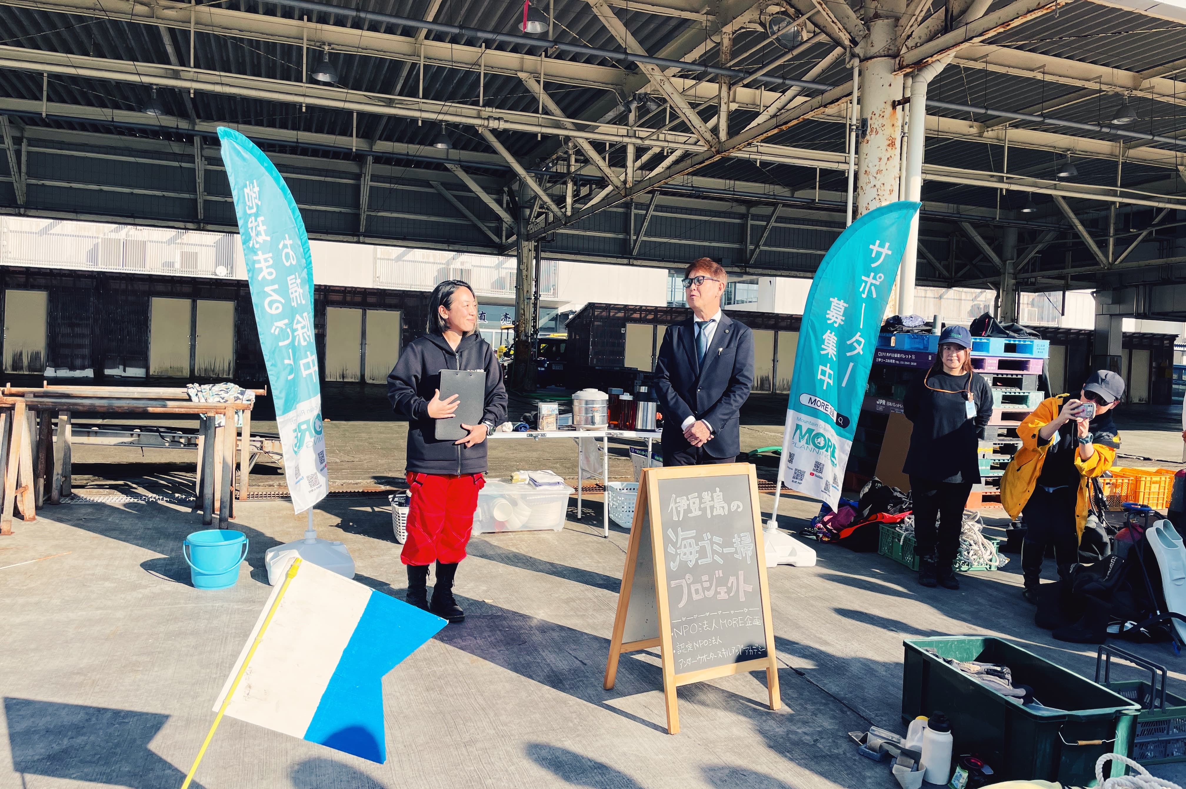 当日は、各地から集まったダイバーの皆さまをはじめ、下田市役所、下田海中水族館、移住者の方々、下田消防、自衛隊など、多くの関係者が参加されました。多様な立場の方々が協力し合い、「未来につなげる海を守る」という共通の想いのもと行動されている姿に、大きな意義と希望を感じました。
