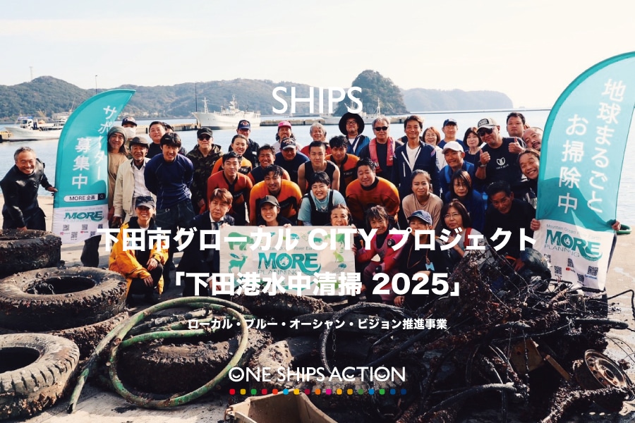 このたびシップスは、下田市と共に進めている環境省「ローカル・ブルー・オーシャン・ビジョン推進事業」の一環である、下田市グローカルCITYプロジェクトに参画し、「下田港水中清掃2025」に参加しました。本清掃活動は、NPO法人 More企画様が主催する海中清掃プログラムとして実施されました。