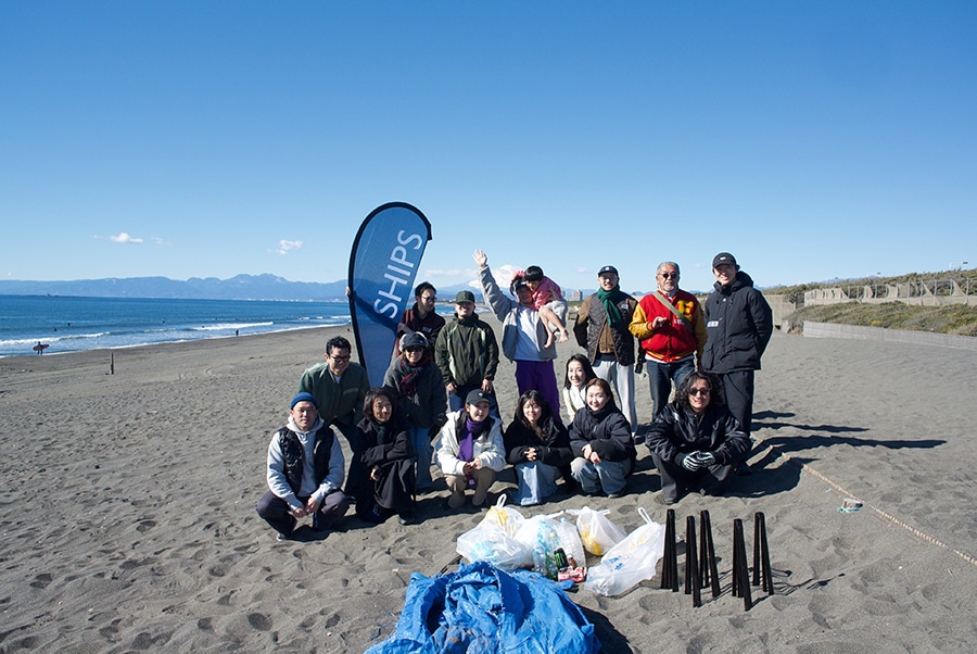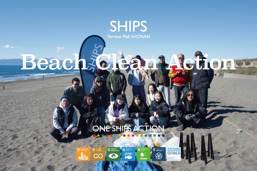 シップスでは30年以上にわたり、伊豆下田にて下田ライフセービングクラブと連携したビーチクリーン活動を継続しています。 その取り組みを広げる形で、「SHIPS Beach Clean Action」を、SHIPSテラスモール湘南店のある神奈川県藤沢市・辻堂海岸にて、月1回ボランティア活動として実施しています。 本活動は、SDGs目標14「海の豊かさを守ろう」の達成に貢献するとともに、プラスチックごみや衣料品問題について考えるきっかけとなる地域貢献活動です。
