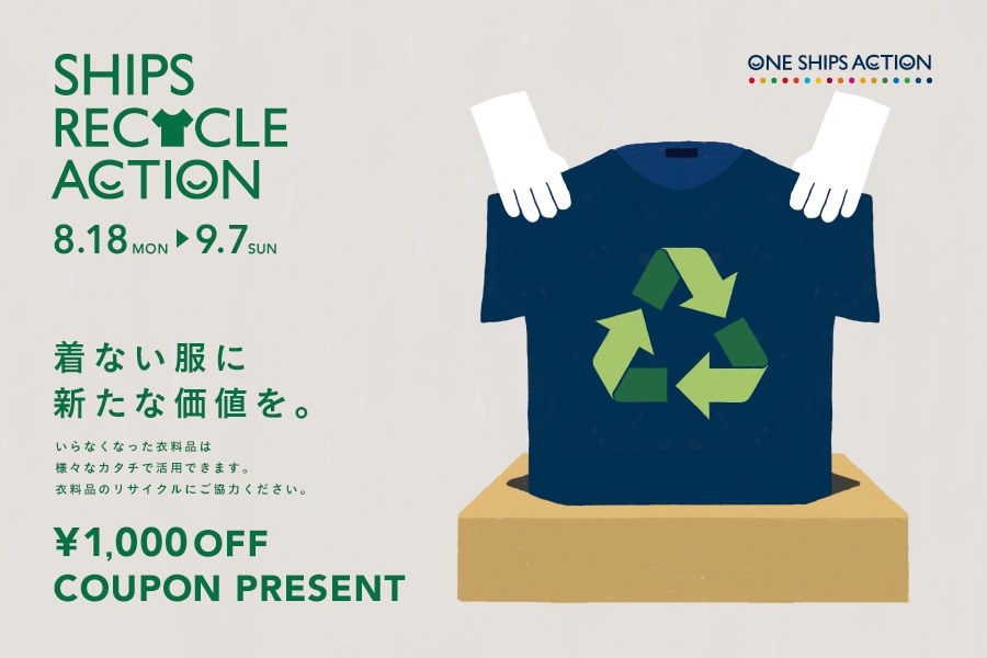 この度、SHIPSグループ各店(一部店舗除く)にて「SHIPS RECYCLE ACTION COUPON