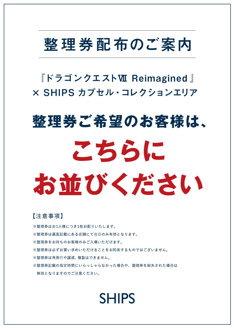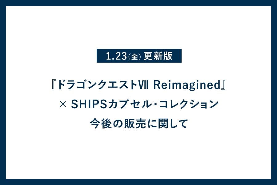 ご好評いただいております『ドラゴンクエストVII Reimagined』× SHIPS カプセル・コレクション商品の今後の販売についてお知らせいたします。