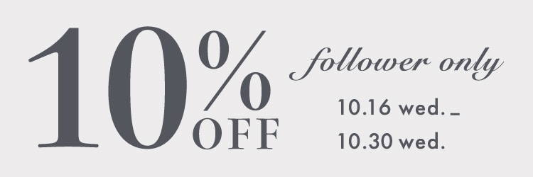 期間中、quaranciel 公式インスタグラムアカウントをフォローいただいているお客様には、店頭にて公式インスタグラムのプロフィール画面を提示いただきますと、その場で10%OFFにて商品をお求めいただけます。