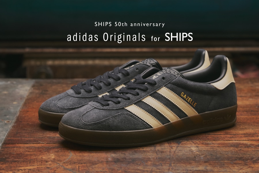 「adidas Originals」に別注した“GAZELLE INDOOR SHIPS”を発表いたします。本作は、SHIPSの50周年を祝う特別な一足として登場。3月28日(金)の発売に先駆け、3月10日(月)よりSHIPS 公式オンラインショップにて先行予約を開始いたします。