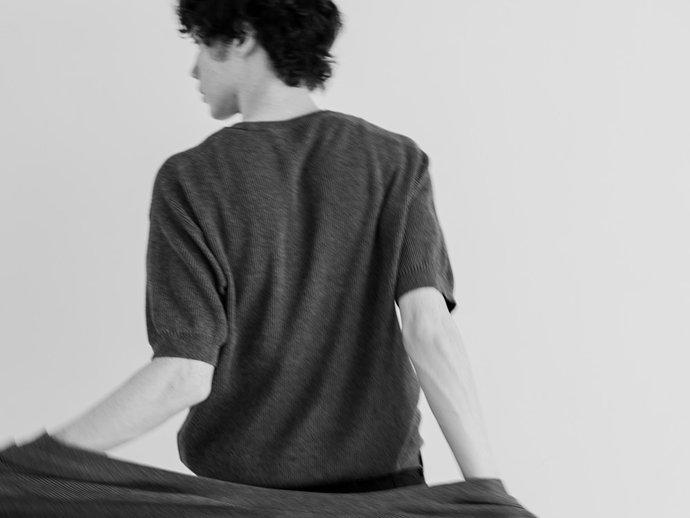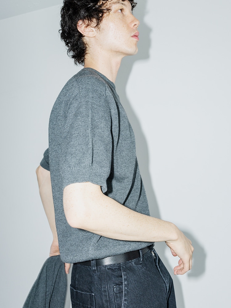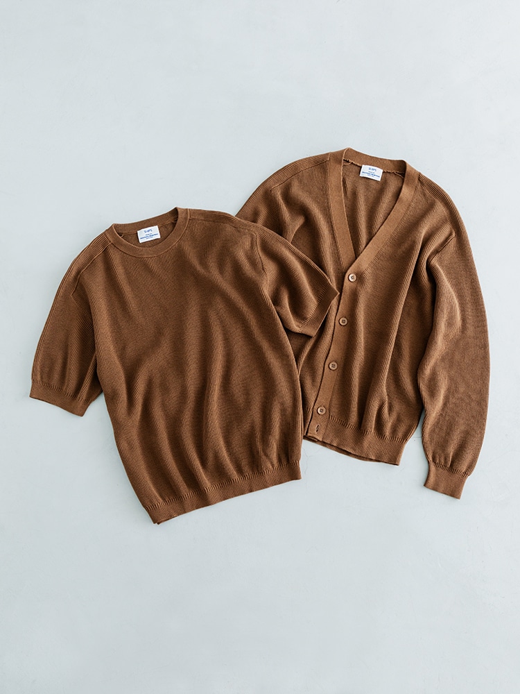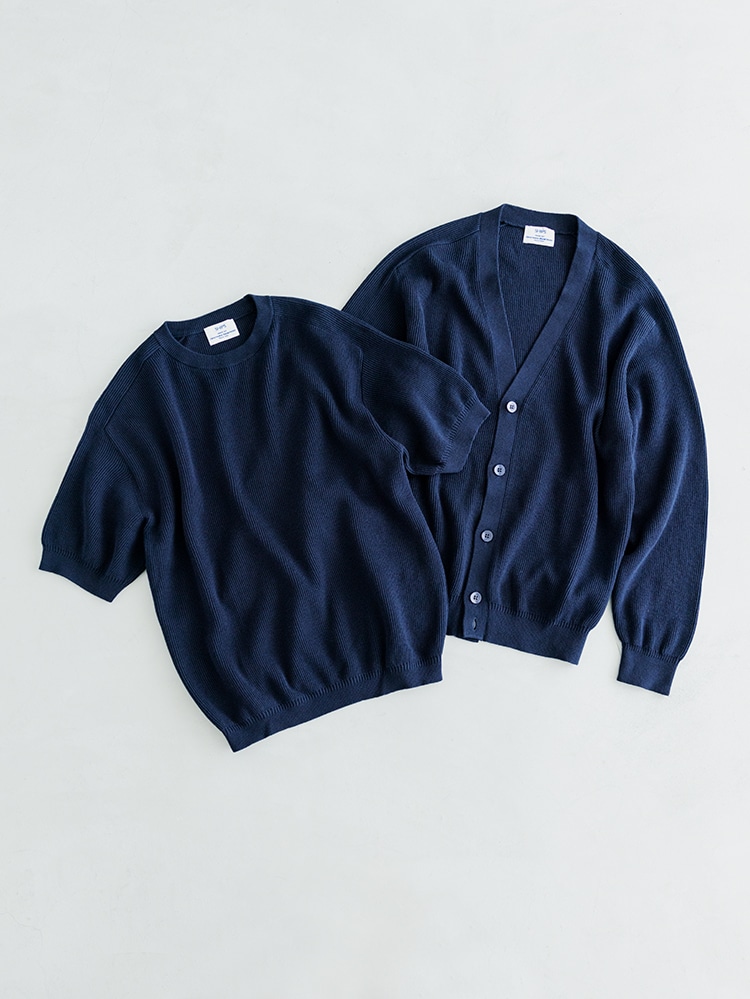 シップスが制作を依頼したのは防縮ウール糸と超長綿をブレンドした原料を使用した半袖クルーネックセーターとカーディガンの2種類。