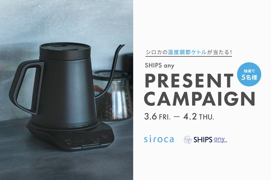 3月6日(金)〜4月2日(木)まで、「シロカの温度調節電気ケトルが当たる!SHIPS