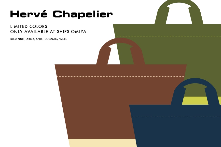 今回のフェアではHervé Chapelierの定番アイテムに加え、SHIPS 大宮店限定でBLEU NUIT, ARMY/ANIS, COGNAC/PAILLEの3色をラインナップ。ぜひこの機会にご覧ください。