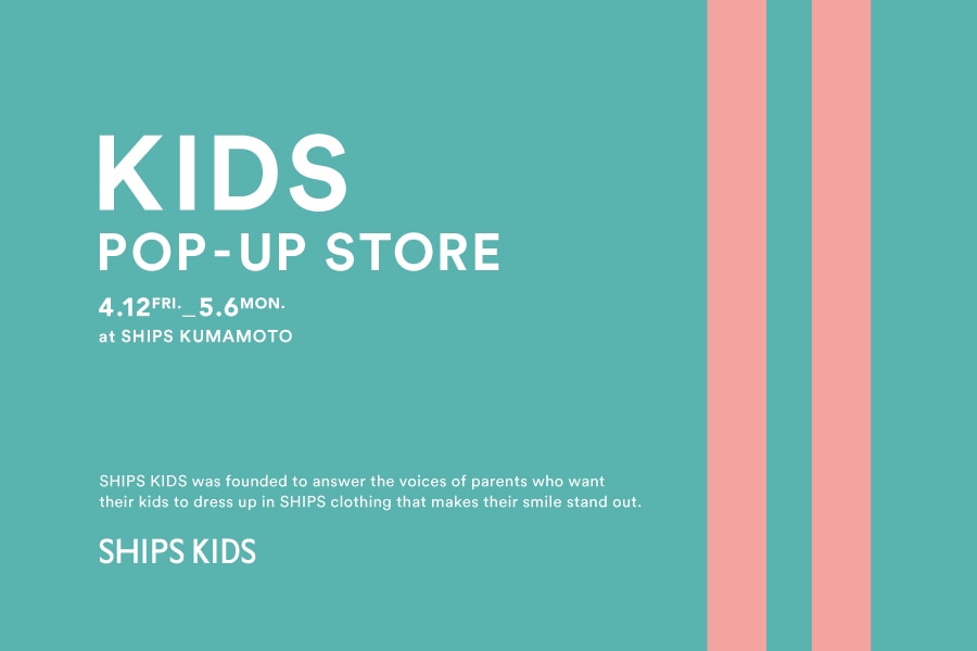 4月12日(金)〜5月6日(月)の期間、SHIPS 熊本店にて普段お取り扱いのないKIDSのアイテムを取り揃えて「KIDS POP-UP STORE」を開催いたします。