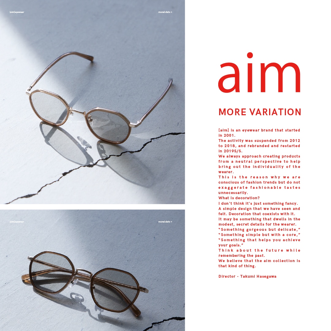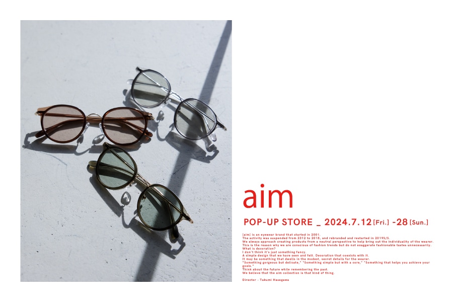 「華やかで繊細なもの」、「素朴だけど芯があるもの」、「目的(aim)の手助けになるもの」を表現するアイウェアブランド。