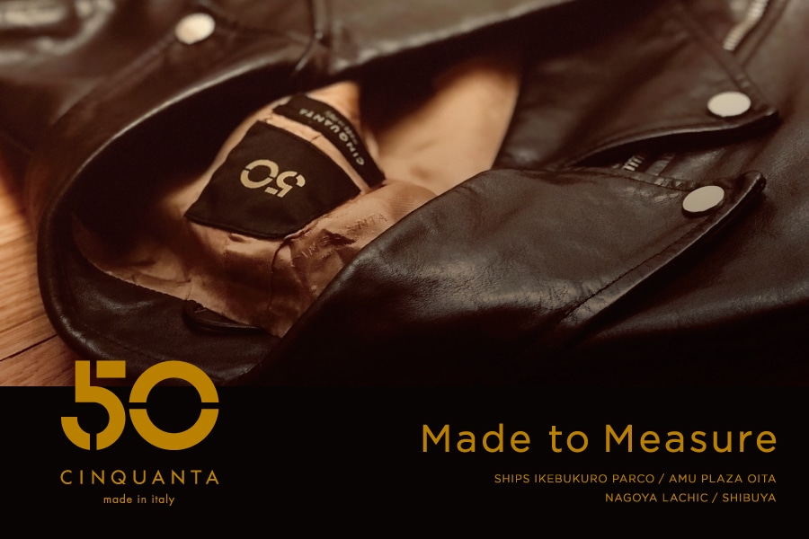 下記の期間、SHIPS 4店舗にて〈CINQUANTA〉定番ライダースのオーダー会「CINQUANTA Made to Measure」を開催いたします。